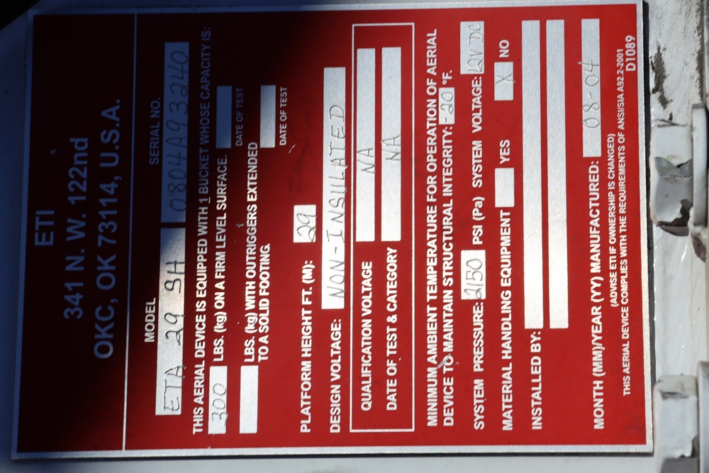 ETI Bucket truck set up. SN: 0804A93240. Seller reports: parts only.