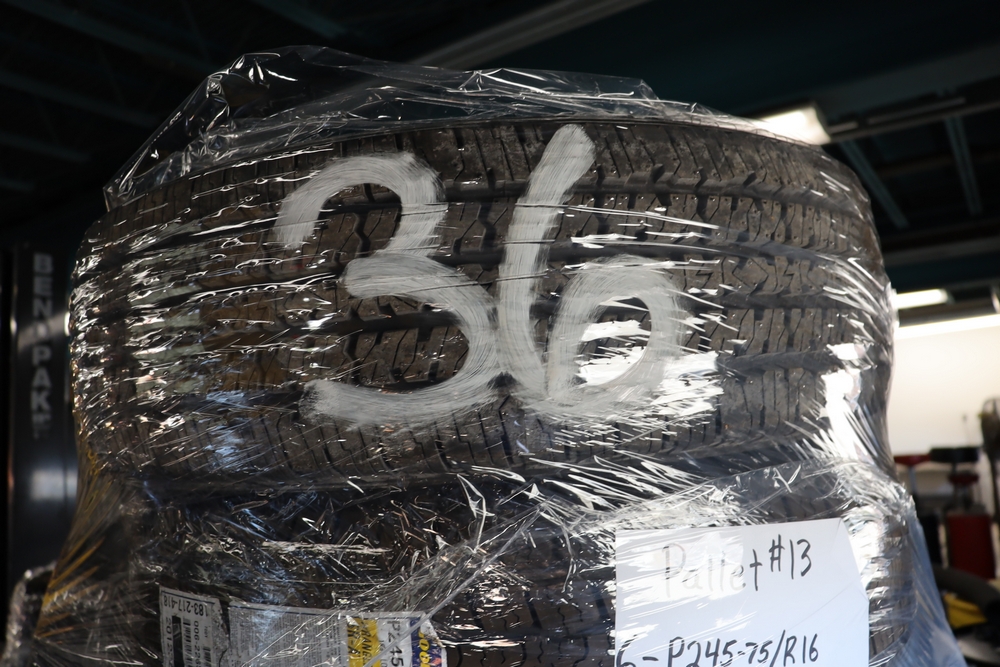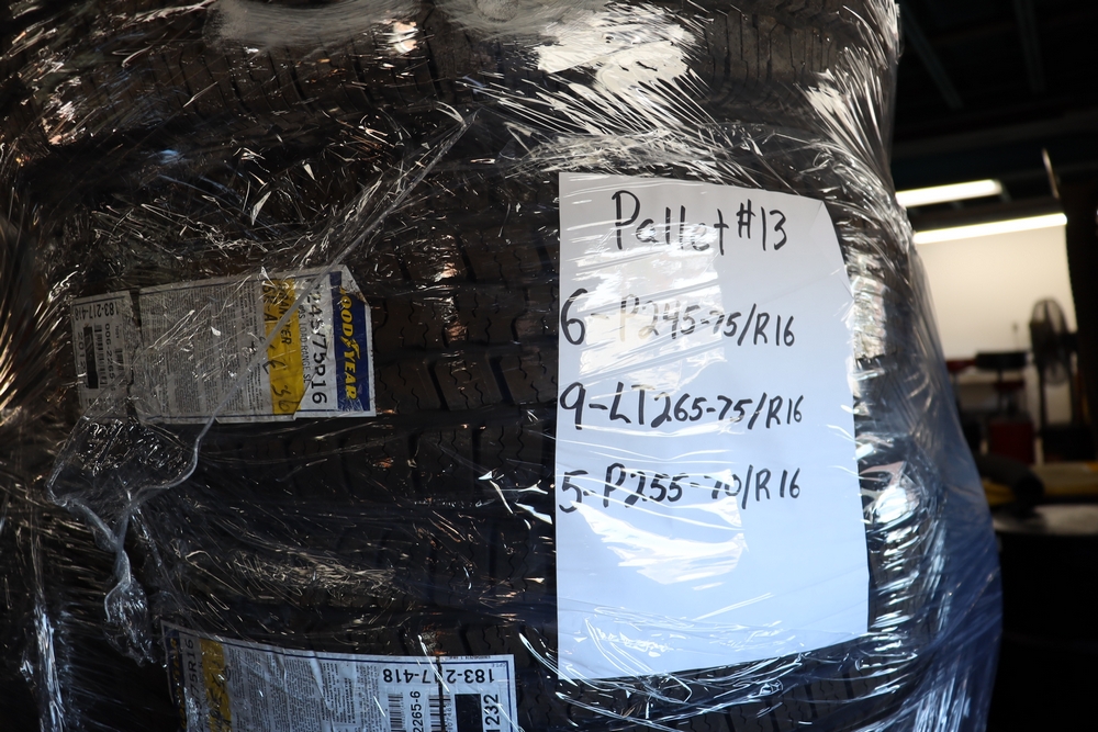 Tire pallet including (6) P245-75/R16, (9) LT265-75/R16, (5) P255-70/R16 . Asset #: pallet #13.