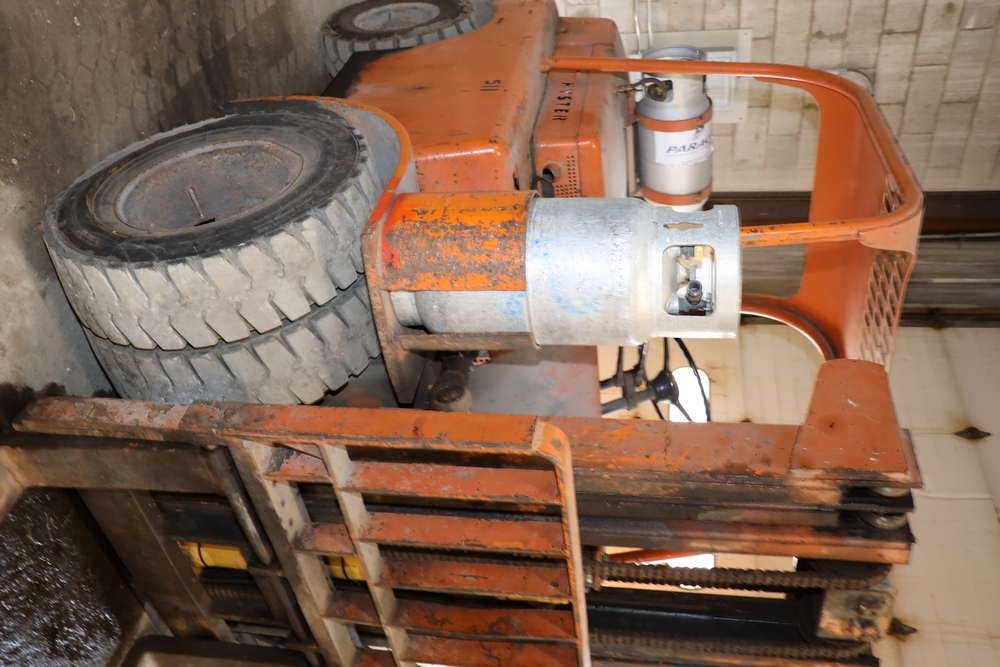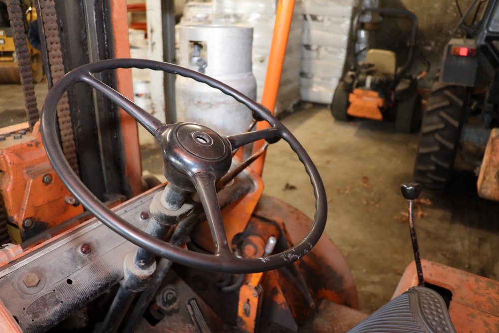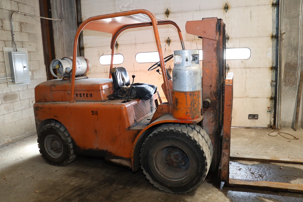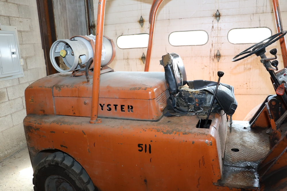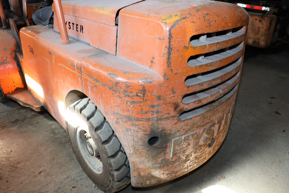 1970 Hyster H80C fork lift. SN: C5D10238. Hours reading: 8750hr. Seller reports: Does not run, ran when parked, hydraulic lift cylinder leaks, brakes weak,propane tank NOT included. Asset #: 1511.