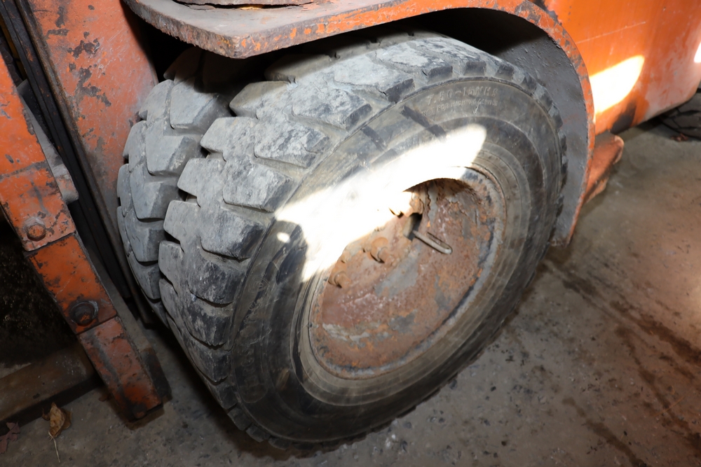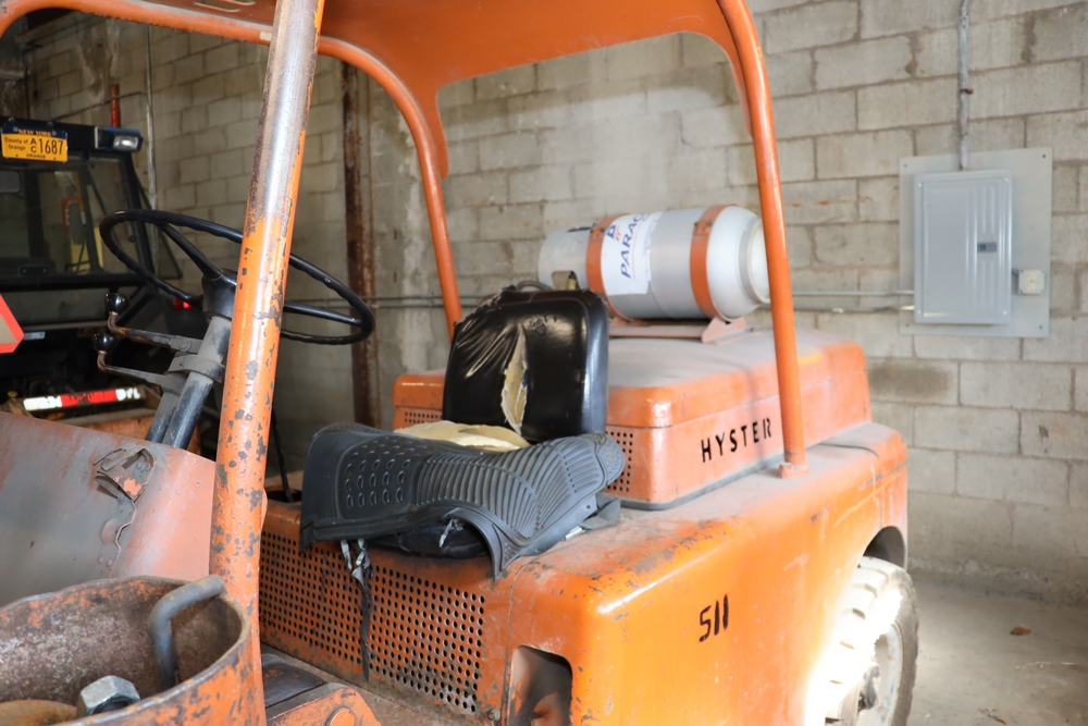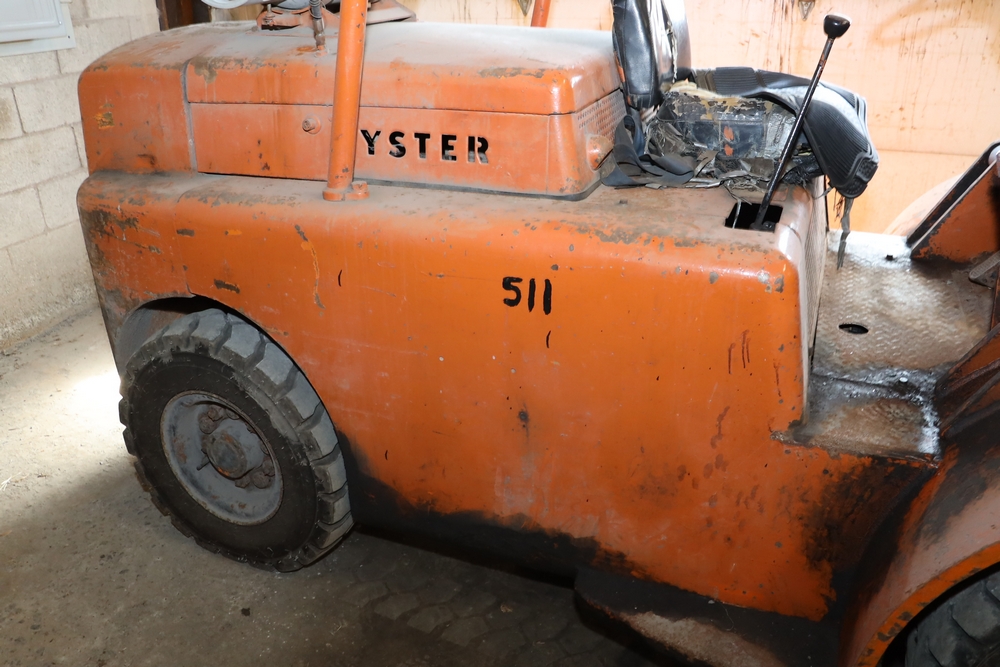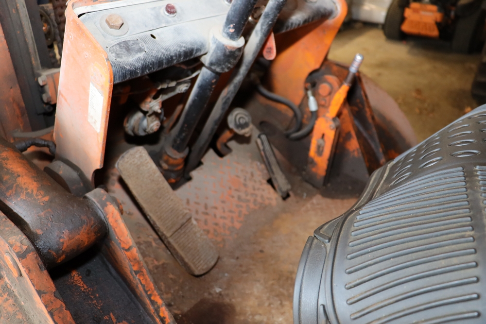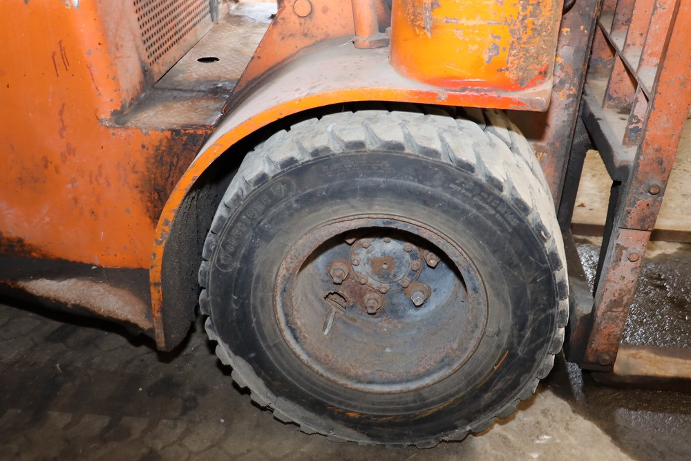 1970 Hyster H80C fork lift. SN: C5D10238. Hours reading: 8750hr. Seller reports: Does not run, ran when parked, hydraulic lift cylinder leaks, brakes weak,propane tank NOT included. Asset #: 1511.