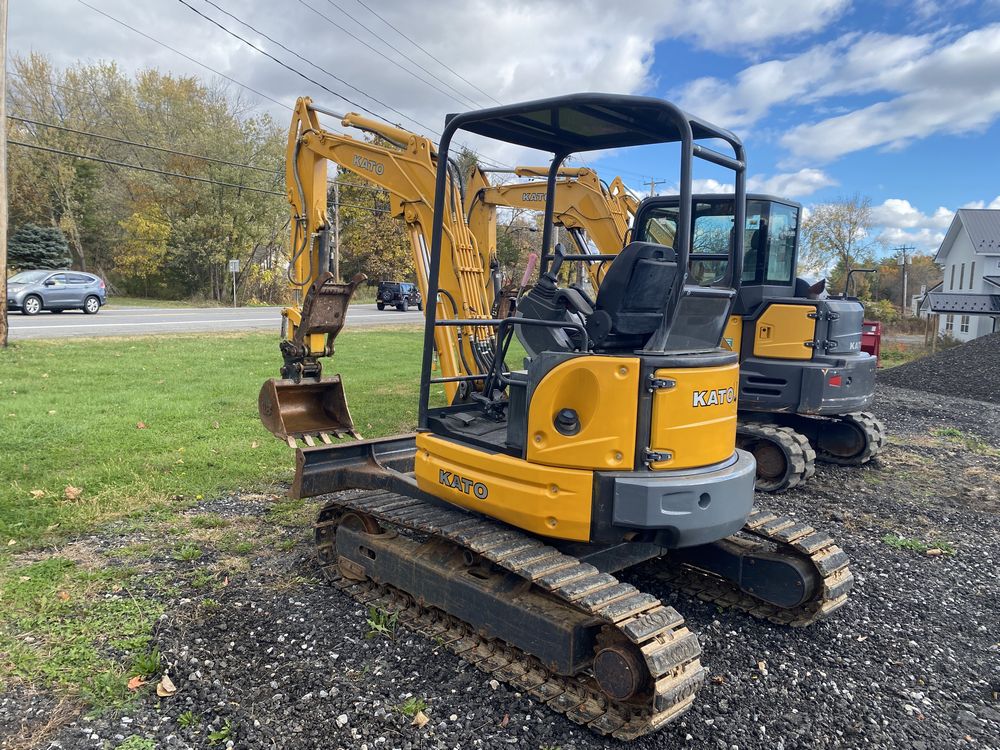 Items include 2019 Kato HD85 V4 Excavator; several 2019 Kato HD35 V4 Excavators; 2019 Kato HD30 V4 Excavator; MK Martin Snow Blower; Fisher 7'6" Snow Pow & Broyhill Stadium Vac. Items are located in Accord, NY.