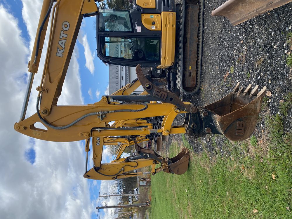 2019 Kato HD35 V4 Excavator, Serial #WF020366. Hours: 906. Appx weight 7,800 pounds, Yanmar Diesel, Open Station, Steel Tracks with Rubber Pads, WB coupler, WB 23" bucket, WB Hydro Thumb, Power Expandable Track Bottom. High Quality Machine made in Japan. Runs/Operates as intended, Ready for work. Sold on Bill of Sale.