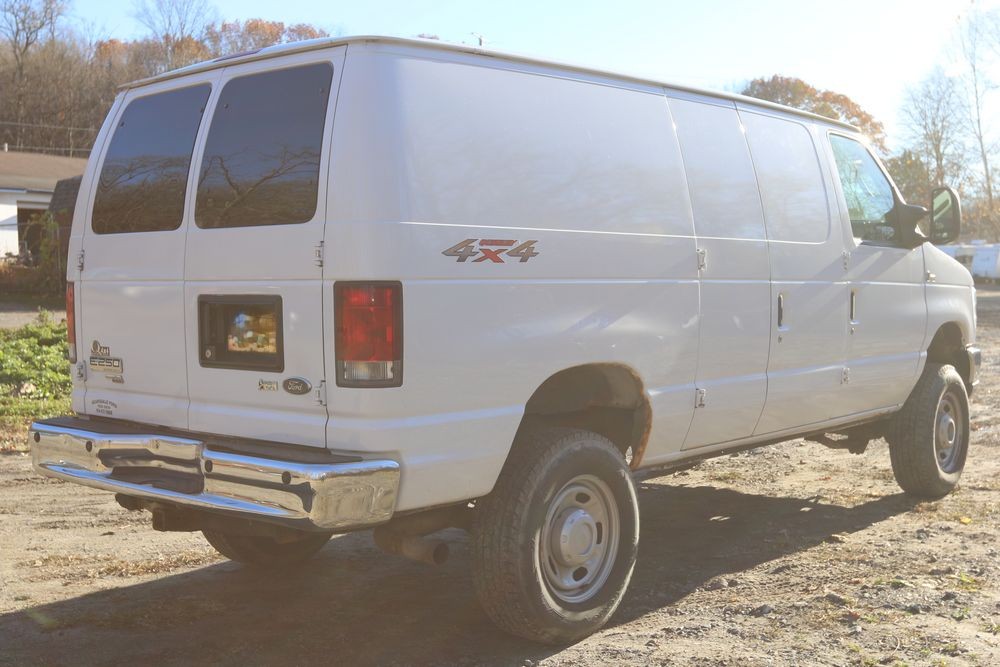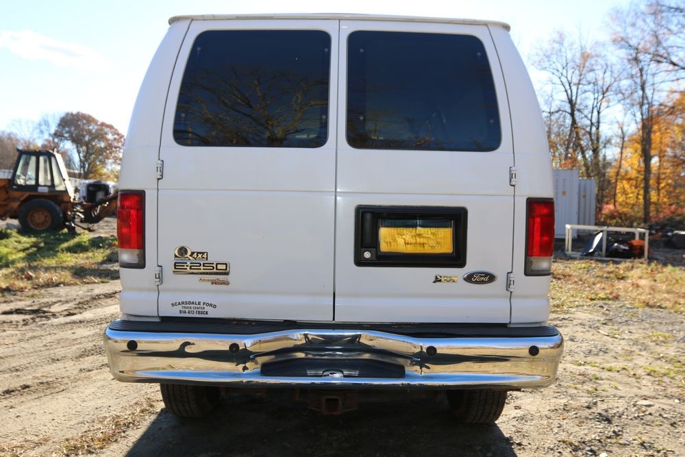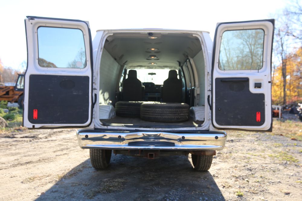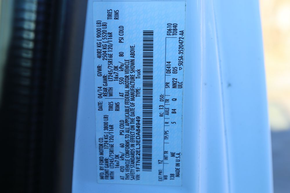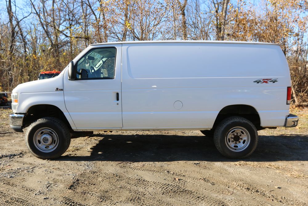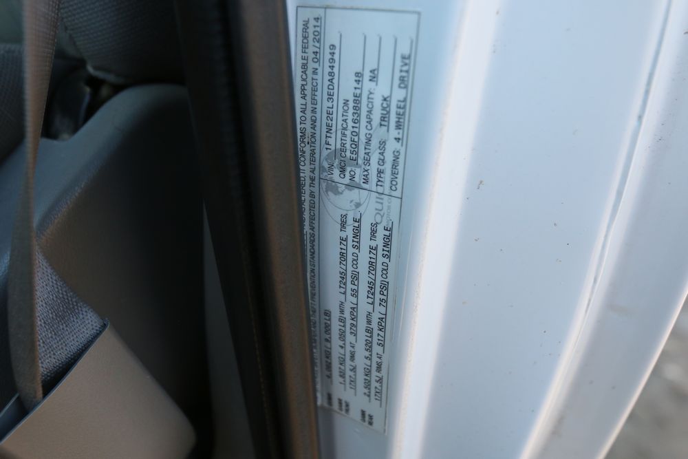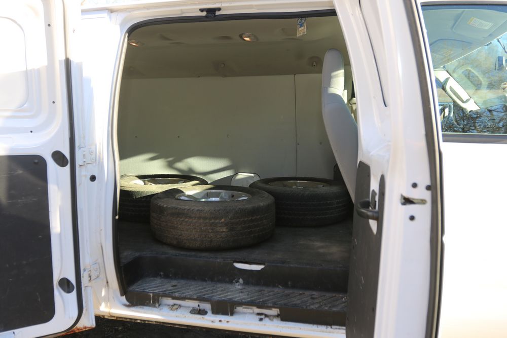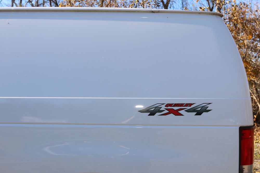 2014 Ford E-Series Van, E-250, Quigley 4x4 conversion, 5.4L V8 FFV engine, odometer reading: 136,325, VIN# 1FTNE2EL3EDA84949. Equipped with an automatic transmission, four-wheel drive, power windows, power locks, air conditioning, cloth seating, and an AM/FM audio system. Includes four additional LT275/65R18 wheels. Seller states, "The water pump & pullies, spark plugs & struts were replaced at 100k. I just did the front breaks & rotors maybe about 10k ago. Radio light is fading, most likely just needs re soldering. It will pass inspection." Runs and drives. Title and keys available.