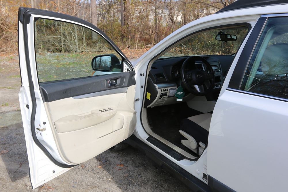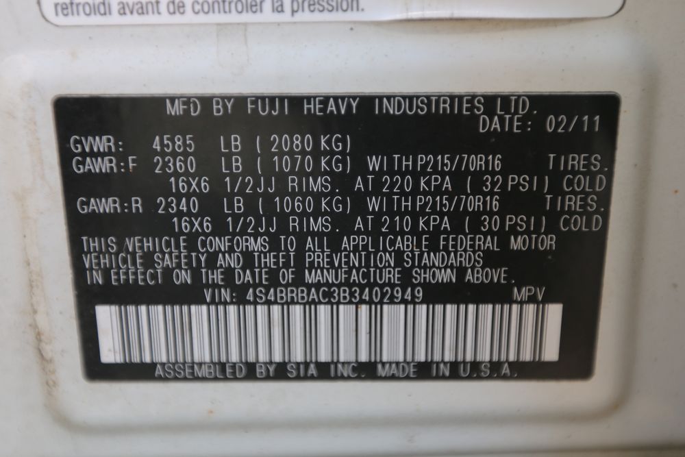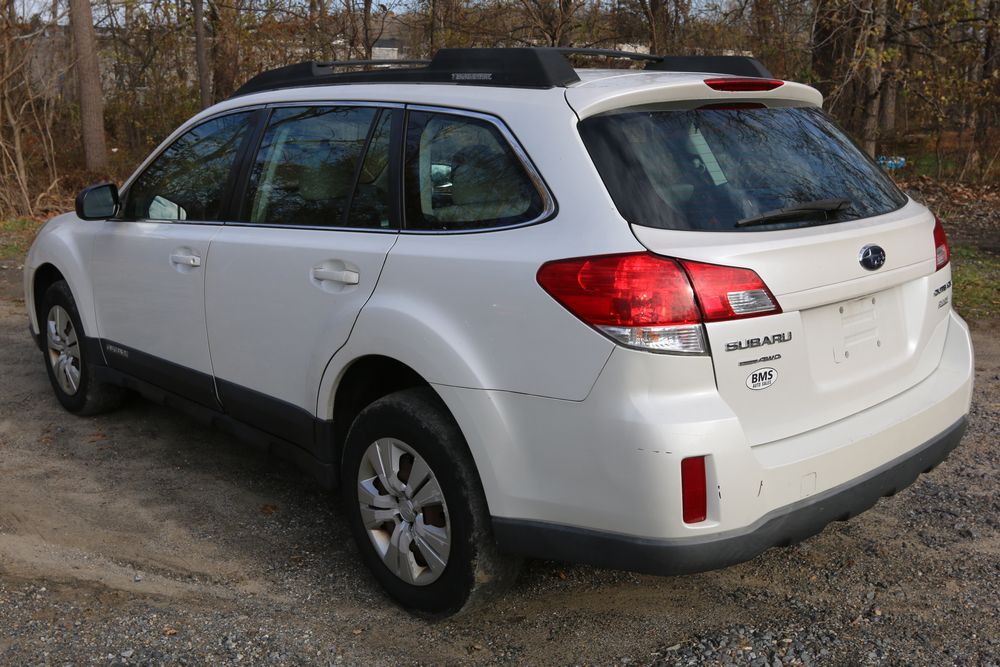 2011 Subaru Outback with a 2.5L H4 DOHC 16V engine, odometer reading: 160,146, VIN# 4S4BRBAC3B3402949. Equipped with an automatic transmission, all-wheel drive, roof rails, and a spacious cloth interior featuring power windows, power locks, and an AM/FM/CD audio system. Seller reports: has an exhaust leak that will need welding. Runs and drives. Title and keys available.