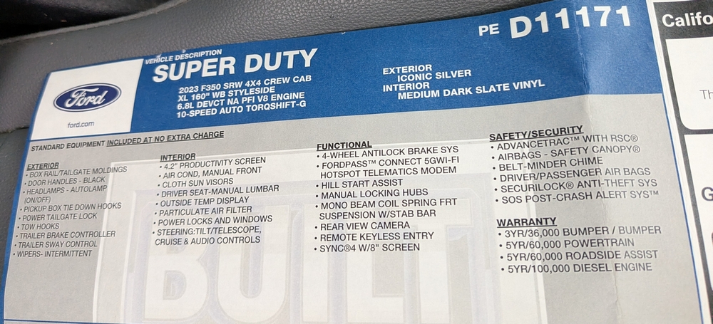 2023 Ford F-350 Super Duty XL Pickup Truck 4X4 with Fisher 8’6” SV2 SS Plow. VIN: 1FT8W3BA5PED11171. Body: Crew Cab 4D. Engine: 6.8L V8 SMPI Gasoline. Odometer reading: 31,216. Seller reports: Runs, drives, operates as intended. Title and Keys Available.