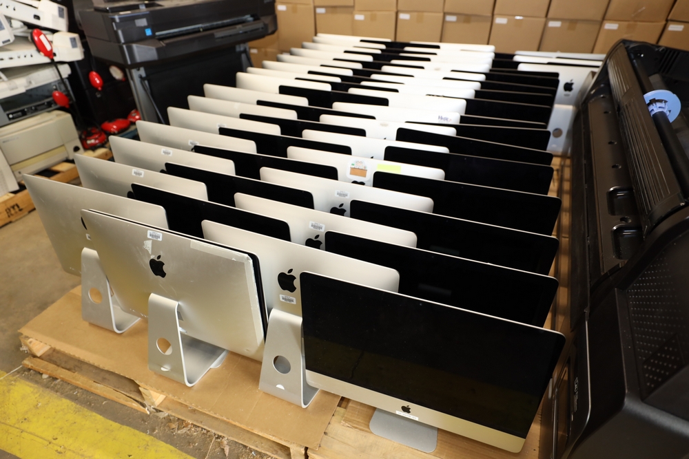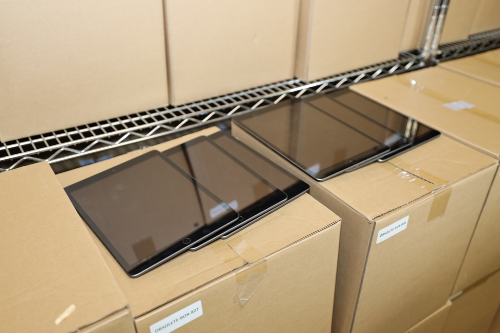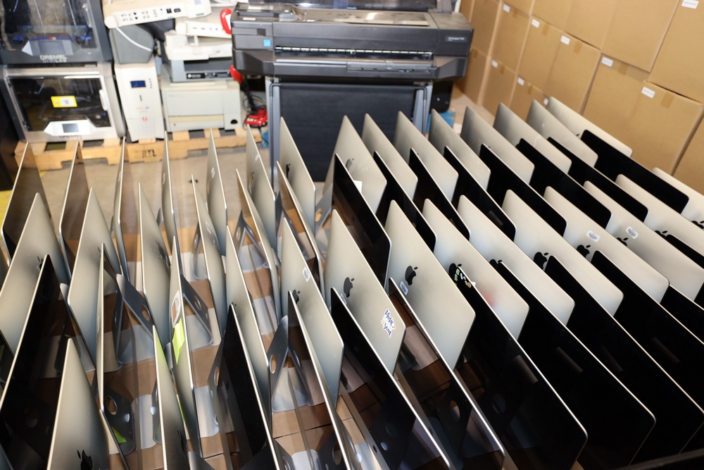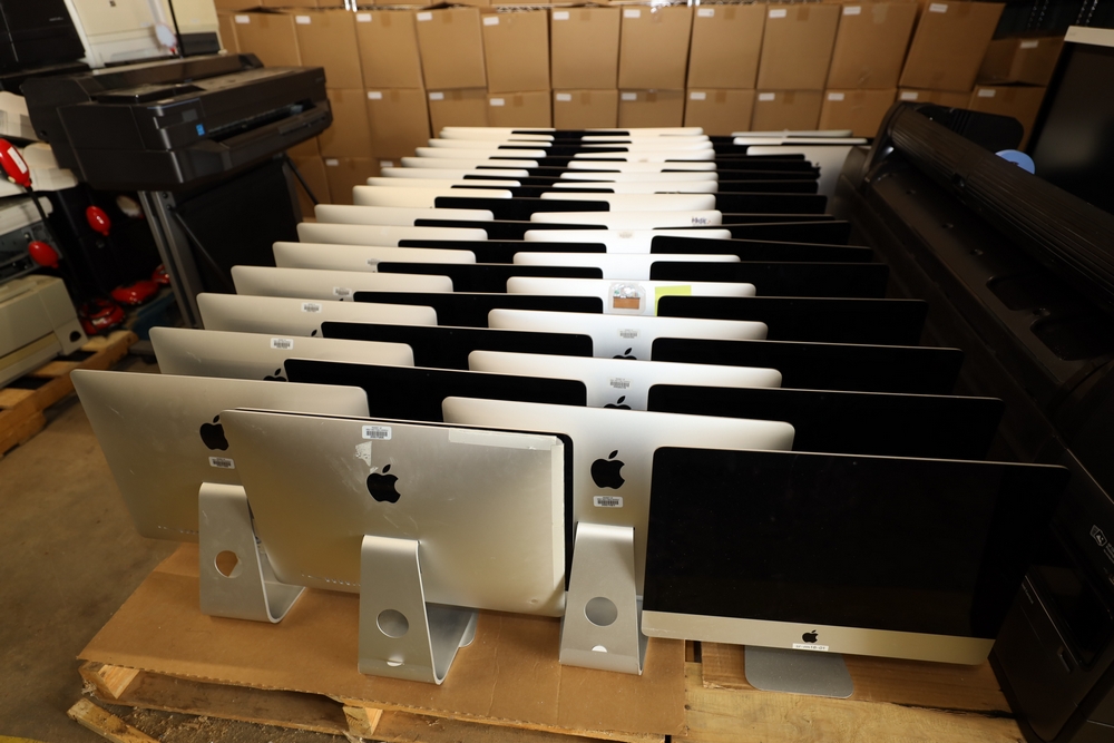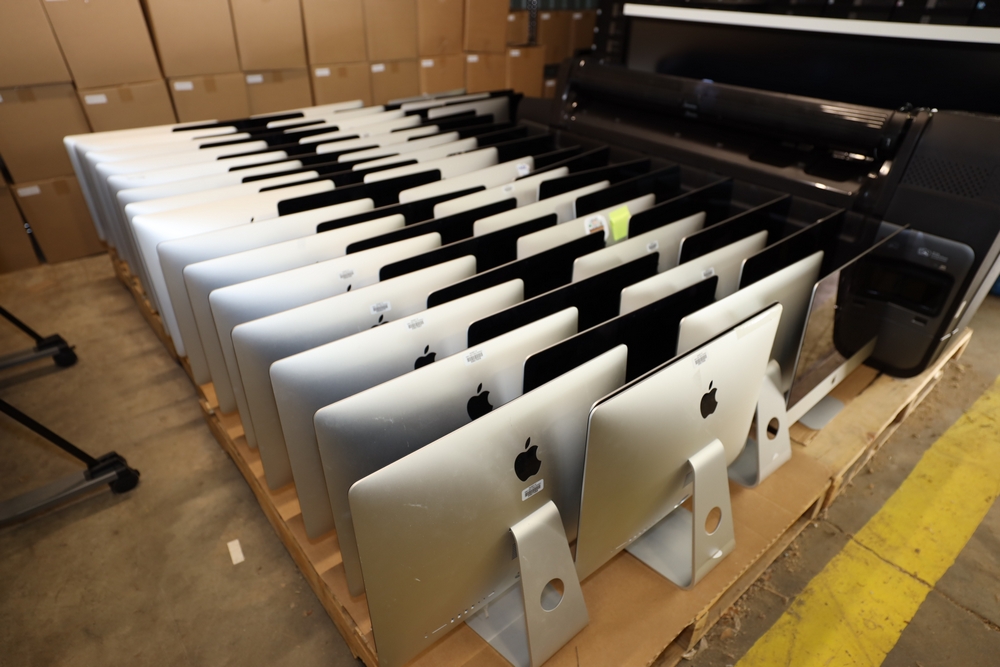 Lot of I.T. items including (65) Apple iMac Desktop Computers, (854) iPad 10.2 7th Generation (32 GB), (1528) iPad 10.2 8th Generation (32 GB), (42) iPad 10.2 9th Generation (64 GB), (138) iPad 9.7 5th Generation (32 GB), (902) iPad 9.7 6th Generation (32 GB), (128) Apple MacBooks, Apple iPods, Dell Optiplex computers, Dell Latitude laptops, HP LaserJet printers, Infocus projectors, Makerbot 3D Printers, Samsung TV’s, Smart TV’s, and more. Cords/charging cables not included. Conditions/styles may vary. Seller reports some units reported to be damaged. Buyer must take all. See attached list for complete inventory and conditions. All computers have either had their hard drives wiped or removed. Any device that once contained sensitive data have been wiped. Location: Phipps.