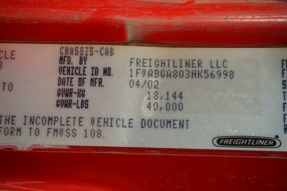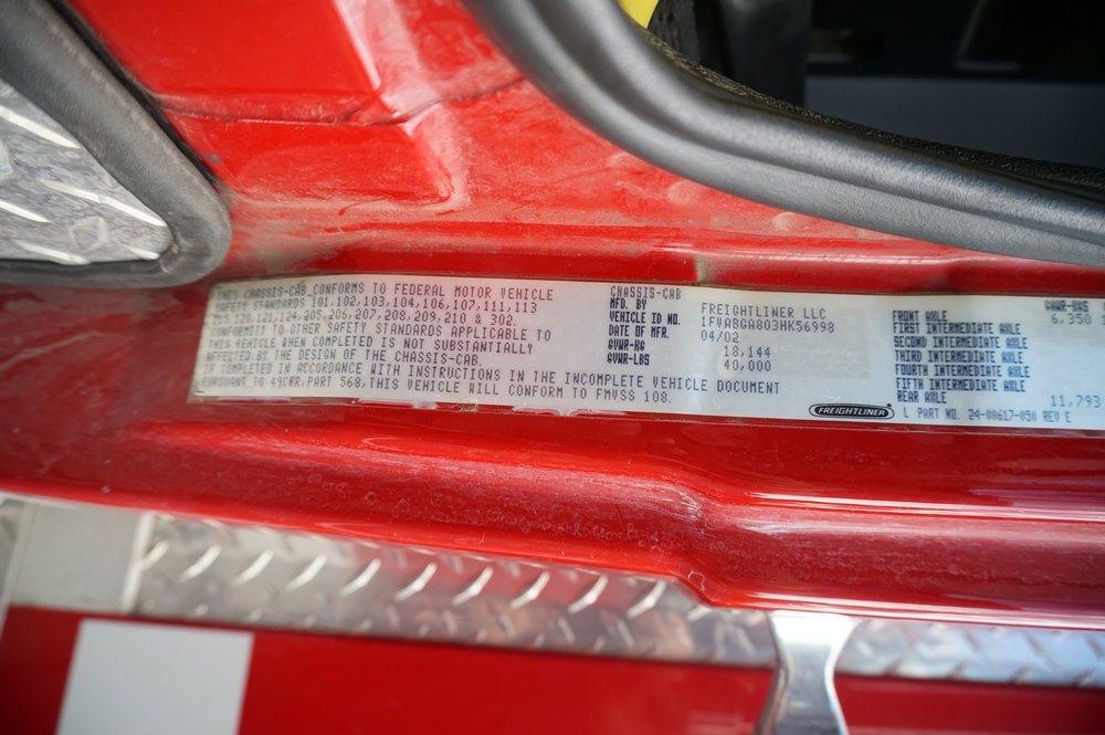 2002 Freightliner FL112 Rescue Truck. VIN: 1FVABGA803HK56998. Miles: 12,982.3. Brakes: Air, Drive: 4x2. Engine: 10.8L 6 Cylinder Cummins ISM Diesel. Includes: 10kw PTO driven Generator. Two 250' Reels on each side. AC and Heated Back. Sky Lights. Rear Controller. Heavy Duty Slides. Auto Battery Conditioner. On Spot Chains. Wiring for Portable Charging. Retractable Steps. Seller States: Been Serviced every year. Service records available on request. Runs and Drives. Includes keys and title.
