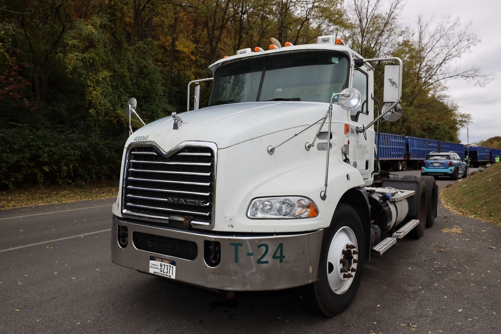 Items include 2011 Mack Pinnacle CXU613 tractor; 2004, 2006, 2008 & 2010 SPEC/TEC ejector trailers & roll of containers. Items are located in Yonkers, NY.