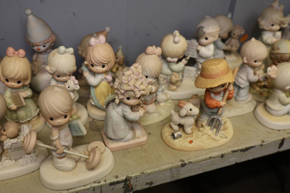Items include collection of Precious Moments figurines; traffic light; Revere TR-200 tape recorder in case; Christian R. Lassen signed/numbered framed artwork; Edward Marshall Boehm Young America 1776 plate; collection of thimbles; Rosenthal Pompadour China; Villeroy & Boch & Mikasa blue glassware; art/history/architecture/fitness books; mineral/geode specimens; slide rulers/drafting tools; pewter/metal tableware; jewelry; women's clothing; handbags/wallets; dolls/plush toys; vacuum cleaners; bunk bed frame; glass coffee table; sporting equipment; lamps; mirrors; tools & more. Items are located in Pleasant Valley, NY.