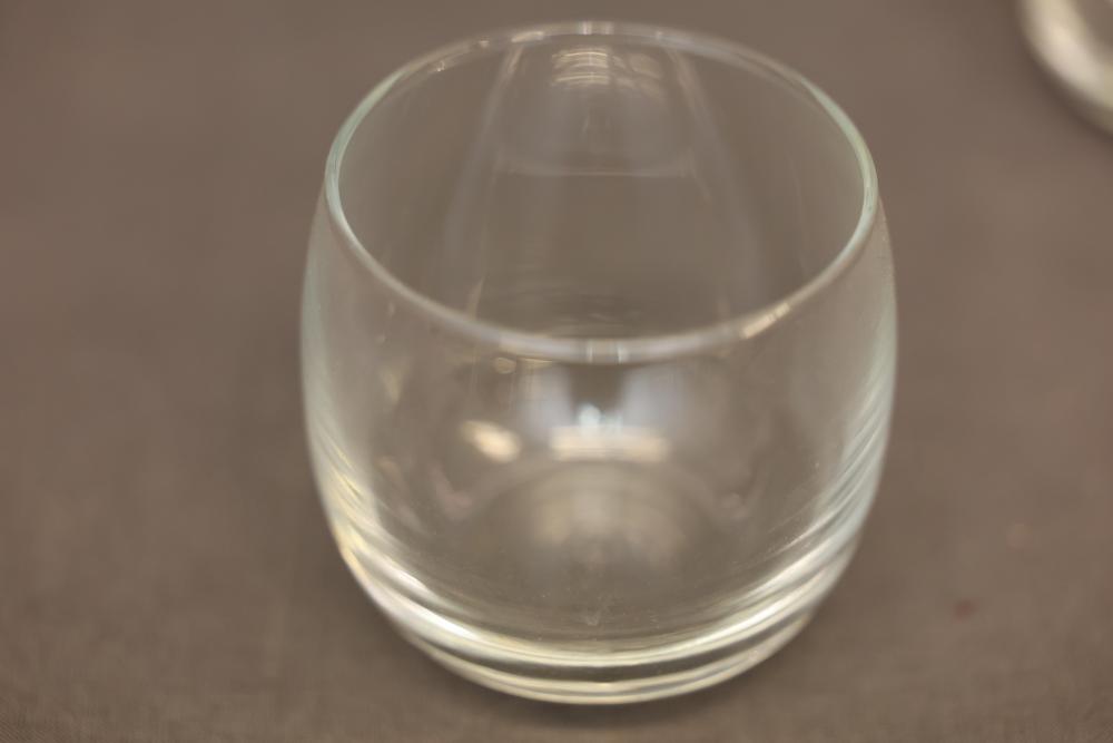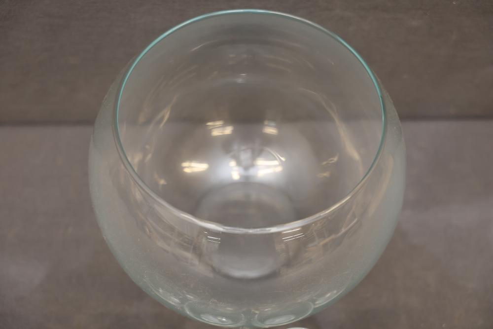 10 Glass Pieces with Punch Bowl and Nine Tumblers. Includes a transparent round punch bowl and nine matching clear tumblers. All pieces are glass and display a uniform design. Items show slight wear consistent with handling and storage. Pickup only.