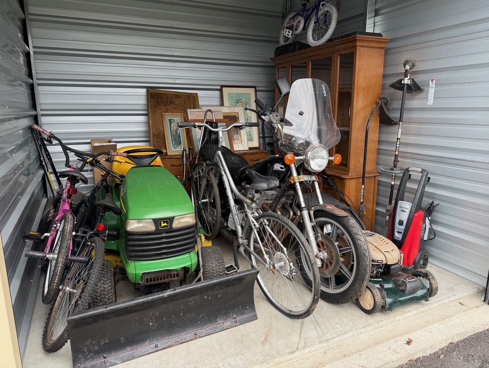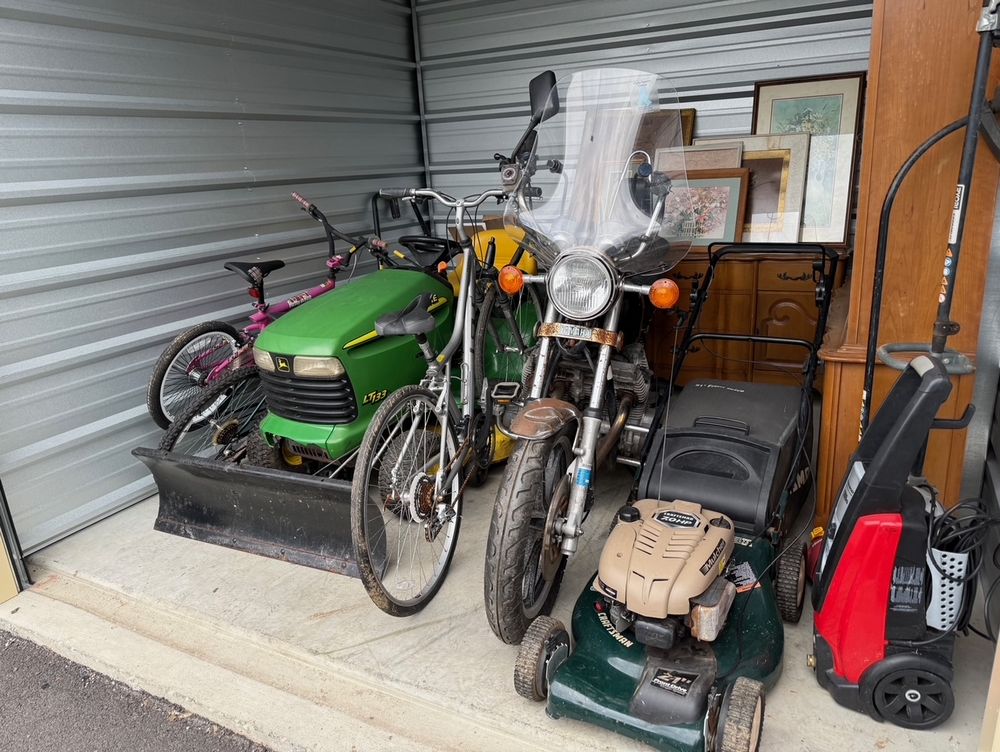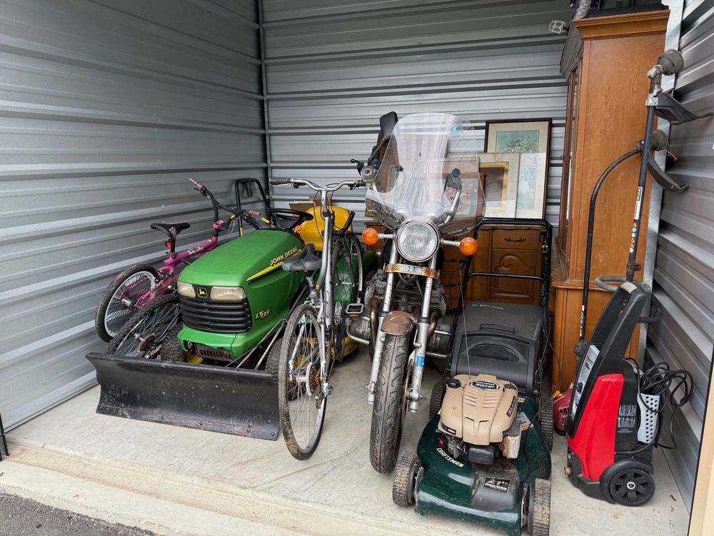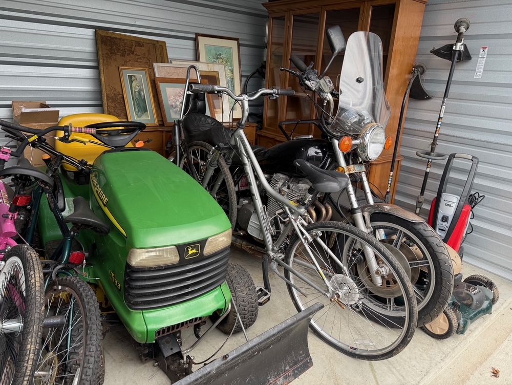 Contents of a 10' x 10’ storage unit being sold by the storage unit owner. Contents include: John Deer tractor with plow, Craftsman push mower, buffet hutch & sideboard, adult & children's weed wackers, bicycles, artwork / pictures, motorcycle plus much more. The motorcycle is being sold parts only. The seller nor the Absolute Auction Center nor the storage facility will not help in obtaining vehicle paperwork. The seller nor the Absolute Auction Center nor the storage facility will not help in obtaining vehicle paperwork. The functionality of electric/electronic items are unknown. The authenticity of items are unknown/have not been checked. The unit is located in Poughkeepsie, NY. Pickup must be completed by Sunday, November 16 at 5PM. Pickup note: The winning bidders must clean/take all & leave nothing in the unit or on the storage facility property & have the unit broom swept clean by Sunday, November 16 at 5PM. Anything left in the unit after Sunday, November 16 at 5PM will be deemed abandoned & all cleanup costs will be the responsibility of the buyer. Any units not 100% completely cleaned out by the stated pickup deadline, the high bidder will incur a minimum disposal fee of $150. There is no dumpster on the property. The storage facility closes at 10PM. Due to security reasons the storage facility & room numbers will only be given to winning bidders. The key to the lock on the unit & the gate access code must be picked up by Friday, November 14 at 2PM at the Auction Center office in Pleasant Valley, NY.