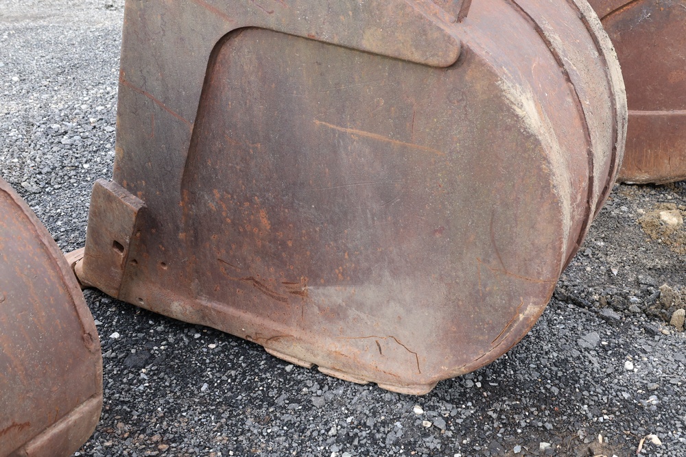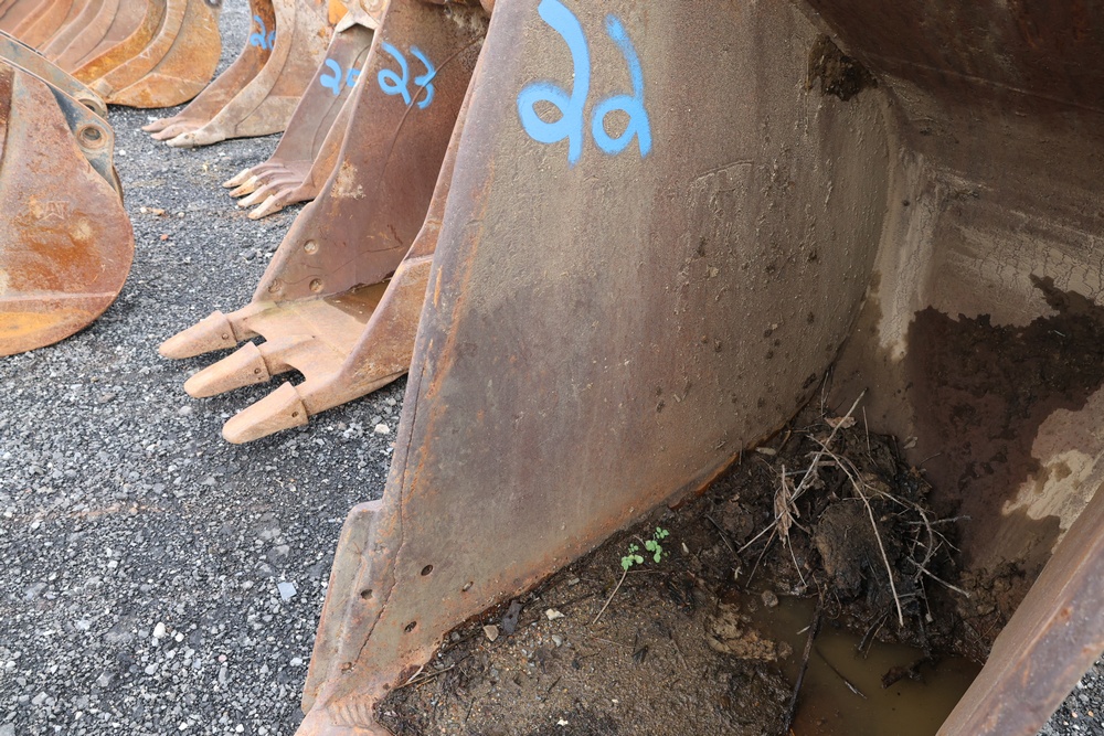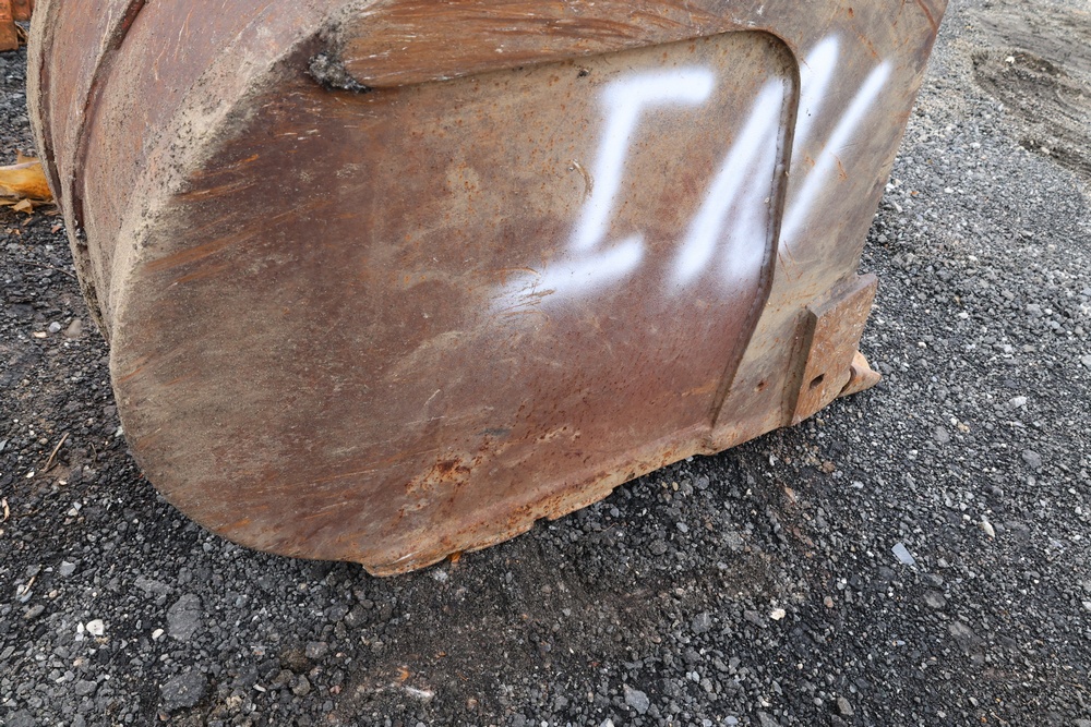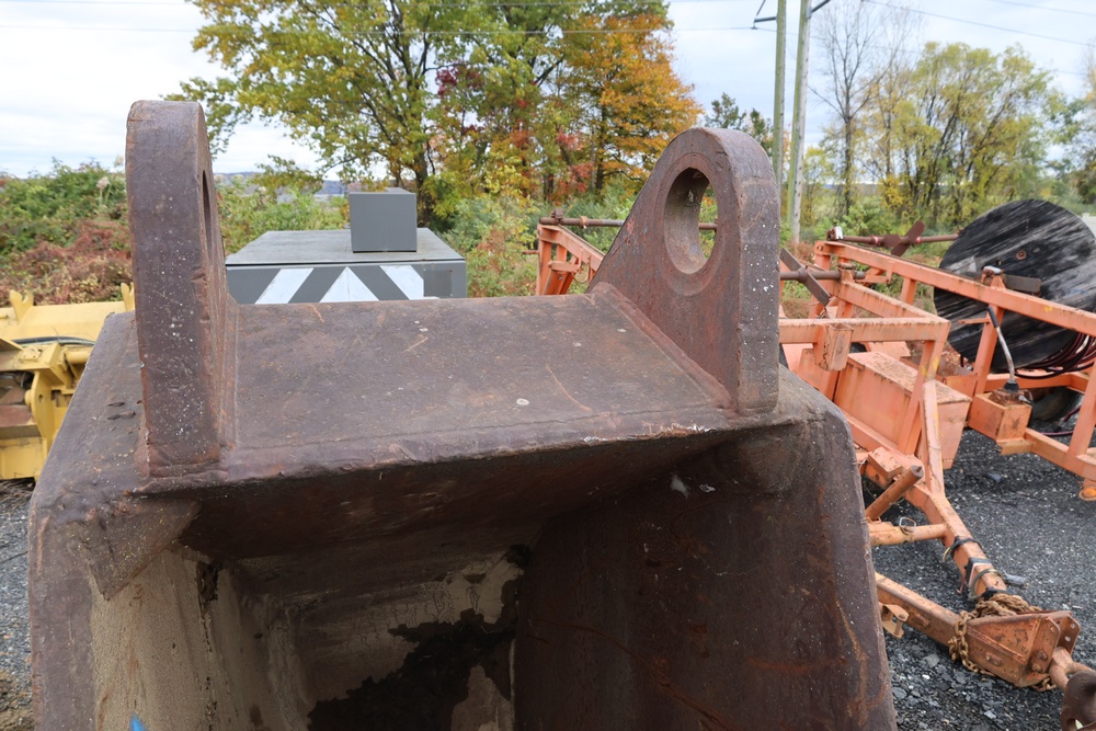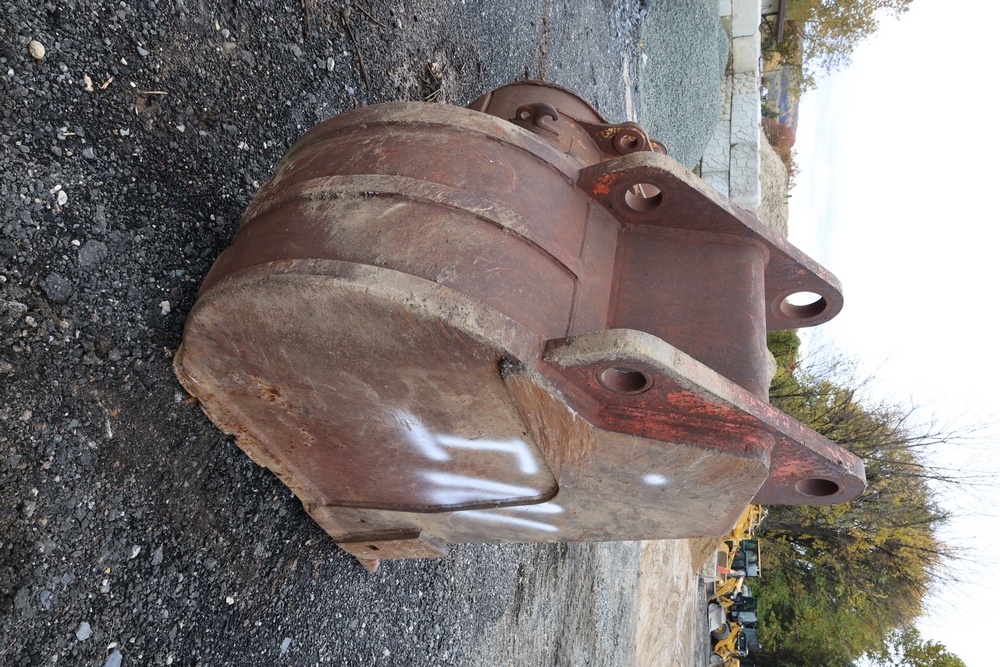 Heavy-duty digging bucket designed for a large excavator, featuring four replaceable teeth and reinforced side cutters for added penetration and wear resistance. The bucket shows full wrap-around wear plates and heavy gusseting on the ear assembly, typical of quarry or trenching applications. Its design and proportions suggest compatibility with machines in the CAT 330–336 size class or comparable models from other manufacturers.