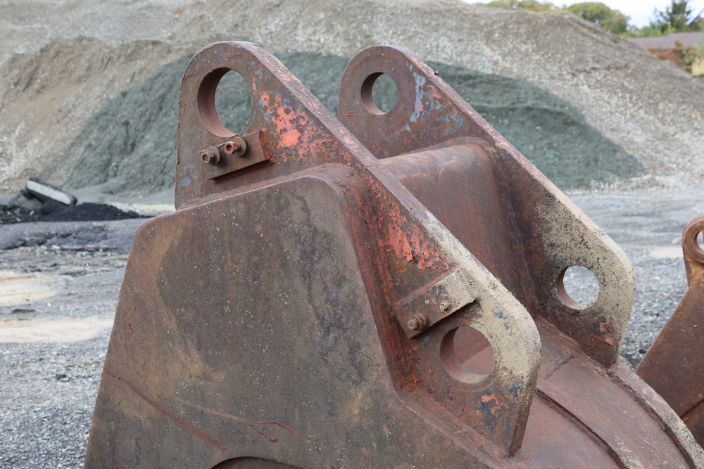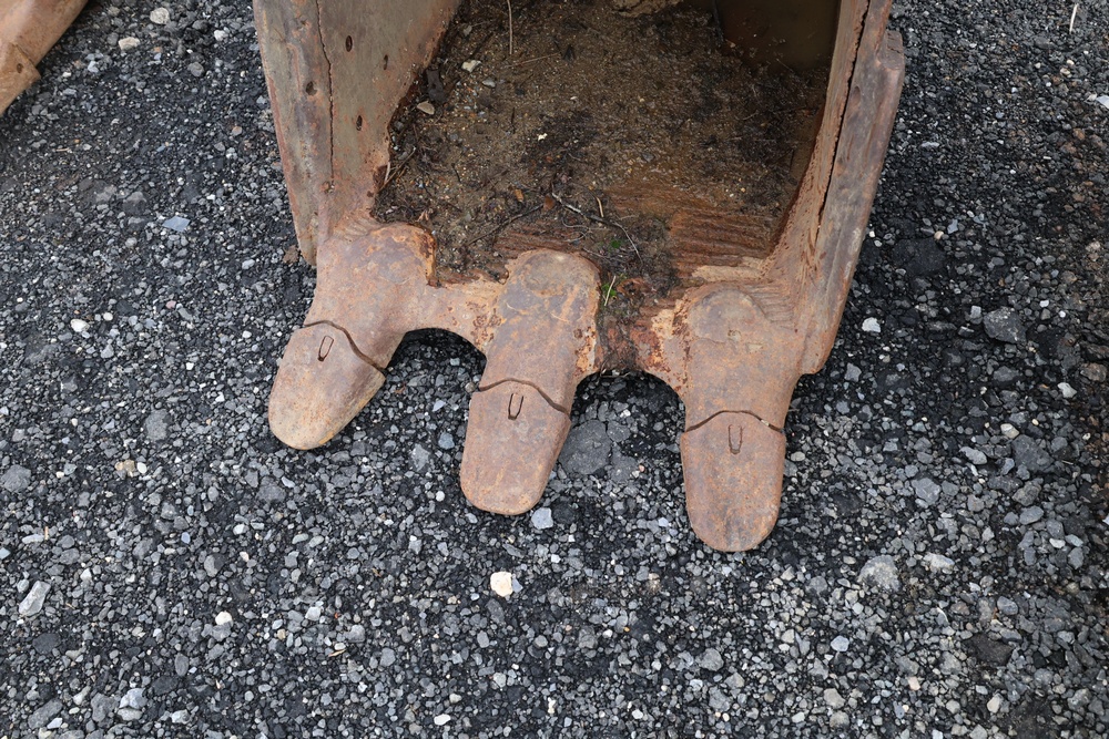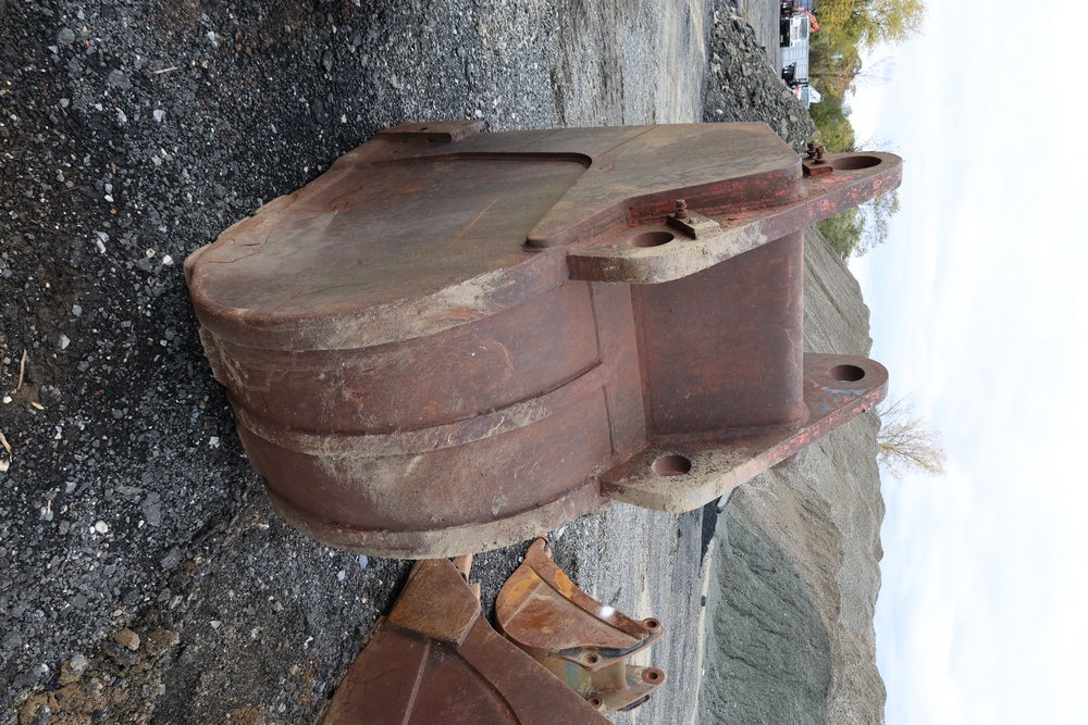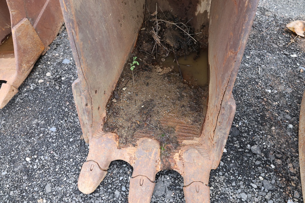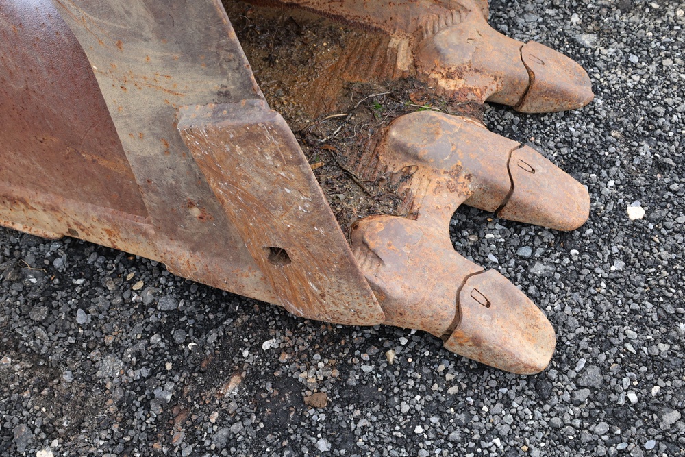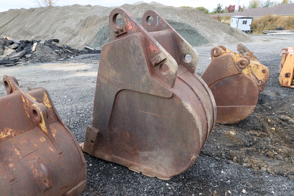 Heavy-duty digging bucket designed for a large excavator, featuring four replaceable teeth and reinforced side cutters for added penetration and wear resistance. The bucket shows full wrap-around wear plates and heavy gusseting on the ear assembly, typical of quarry or trenching applications. Its design and proportions suggest compatibility with machines in the CAT 330–336 size class or comparable models from other manufacturers.