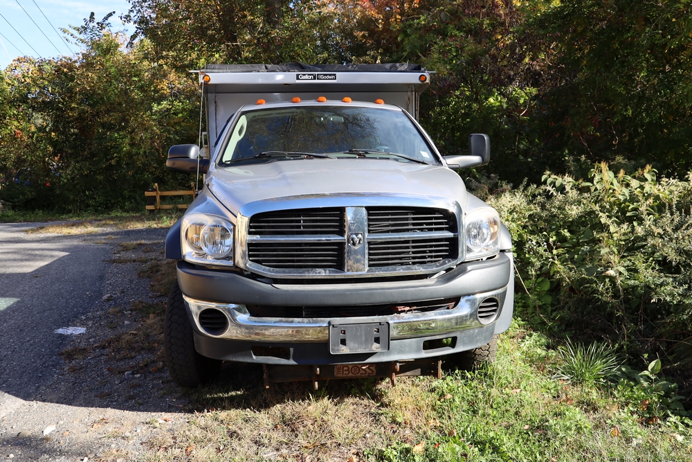 2008 Dodge Ram 5500 Dump Truck. VIN: 3D6WD76A78G182594. Body: Chassis 2D. Engine: 6.7L I6 CRDI Diesel. Odometer reading: 49,831. Seller reports: Needs head gasket and EGR cooler, no title, Totalled in 2023 flood, never got a salvage title, repaired to working order. Does not run/drive. No title, parts only. Includes Boss 9-foot plow.