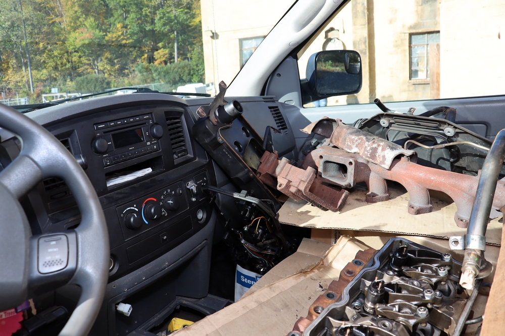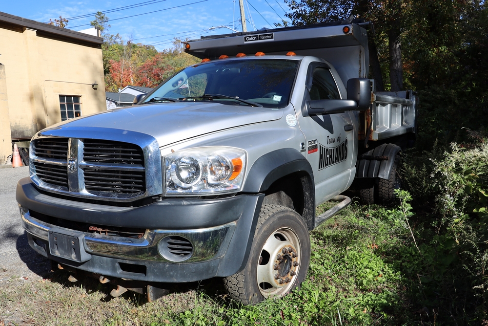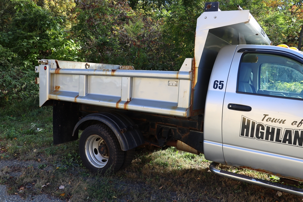 Items include 2018 Ford E-350 Super Duty bus; 2008 Dodge Ram 5500 dump truck & two-yard spreaders. Items are located in Highland Falls, NY.