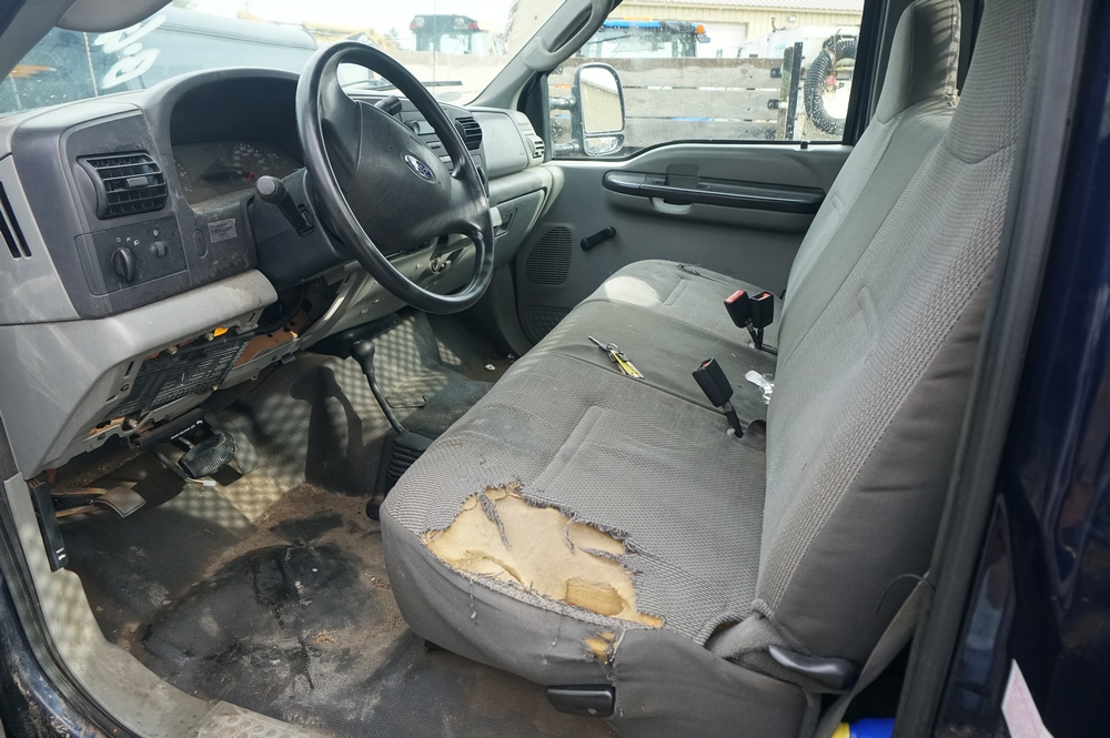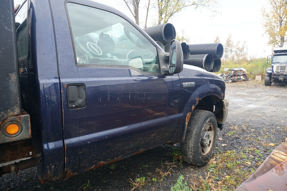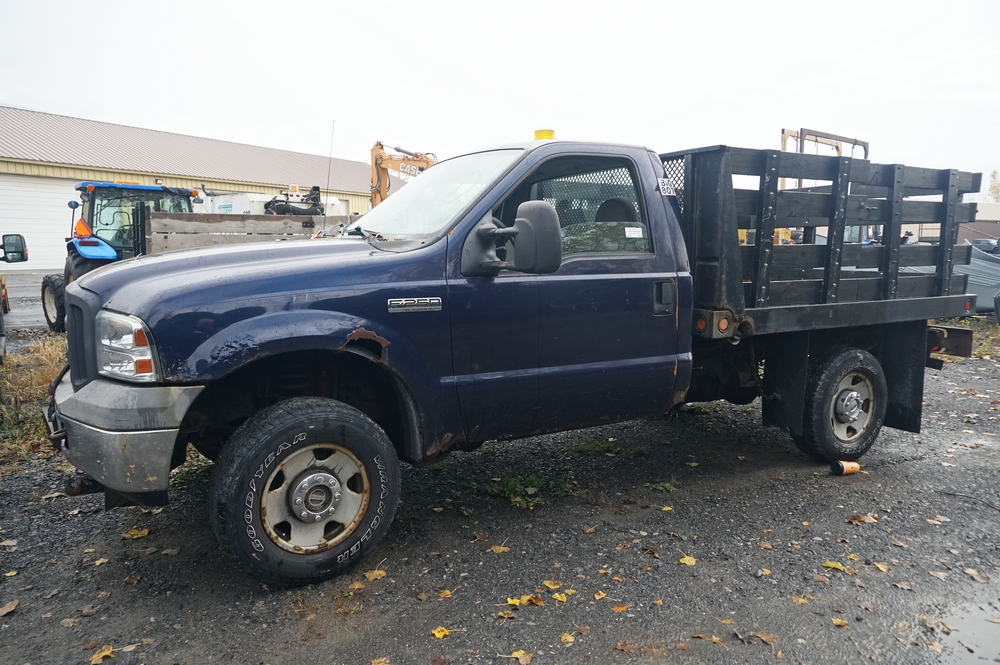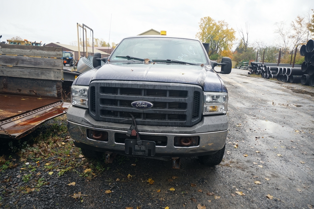 2005 Ford F250 Super Duty. VIN: 1FTNF215X5ED16882. Odometer Reads: 121878. Drive 4x4. Transmission: Manual six speed. Engine: 5.4L V8. VVT. Has Fisher Plow Setup. Rip in seat. Rust. Owner States: Runs and Drives, has possible manifold leak. Includes Title and Key.