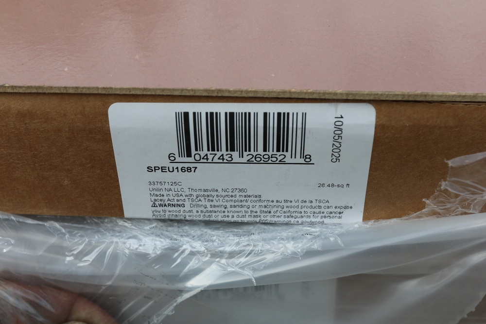 Lot is for 52 cartons of new laminate flooring. 26.48 square feet per carton. 1376.96 total square feet. Manufacturer is Mohawk. Product is Belhan Court Welsh Slate Oak. This product is Waterproof. Uni-Clic floating locking system. 2nd quality indicating up to 10% of product may have minor imperfections such as markings, off-shade, blister/missing spot of wood grain, sample board.