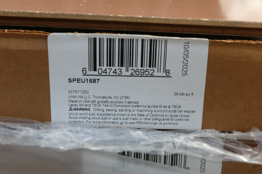 Lot is for 52 cartons of new laminate flooring. 26.48 square feet per carton. 1376.96 total square feet. Manufacturer is Mohawk. Product is Belhan Court Welsh Slate Oak. This product is Waterproof. Uni-Clic floating locking system. 2nd quality indicating up to 10% of product may have minor imperfections such as markings, off-shade, blister/missing spot of wood grain, sample board.