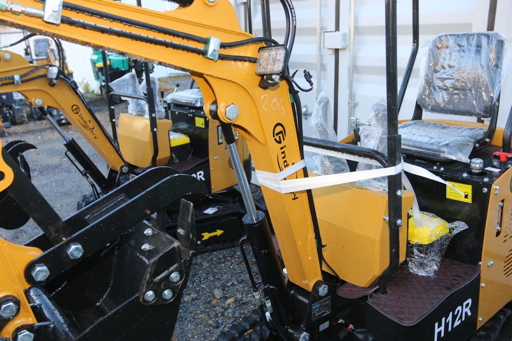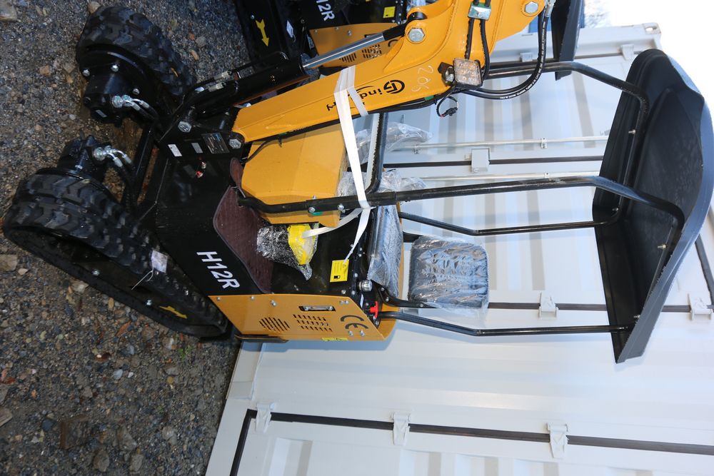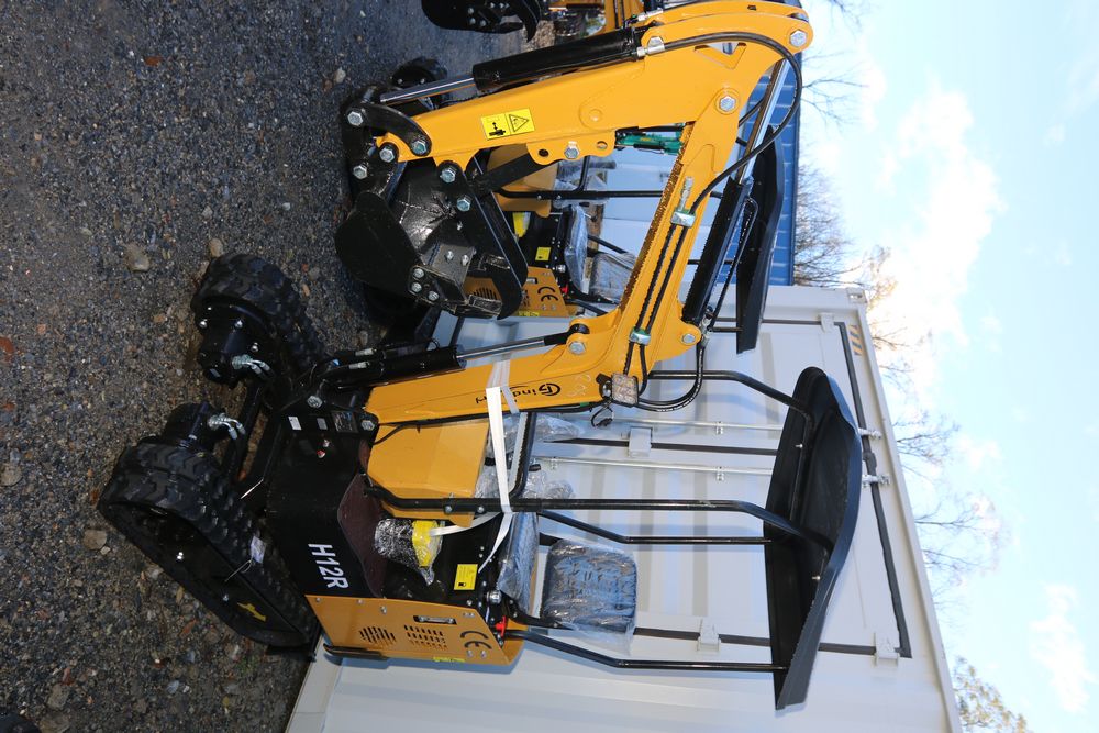 New 2025 CFG Industrial mini excavator on tracks model H12R, with hand and foot controls, canopy cover, dozer blade, thumb, 420cc engine. Hours reading less than 1 hour.