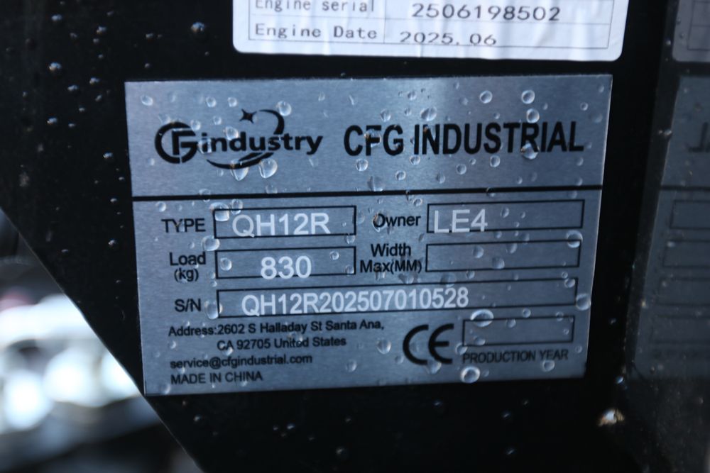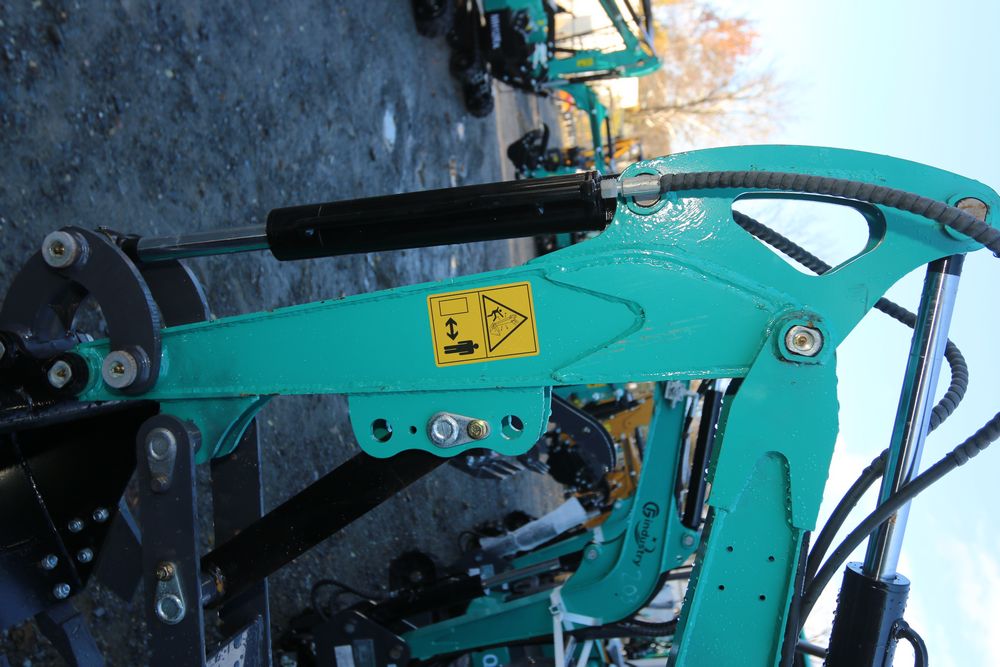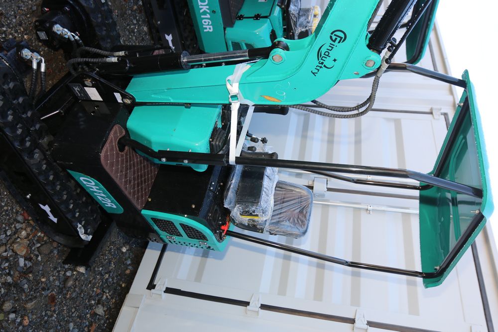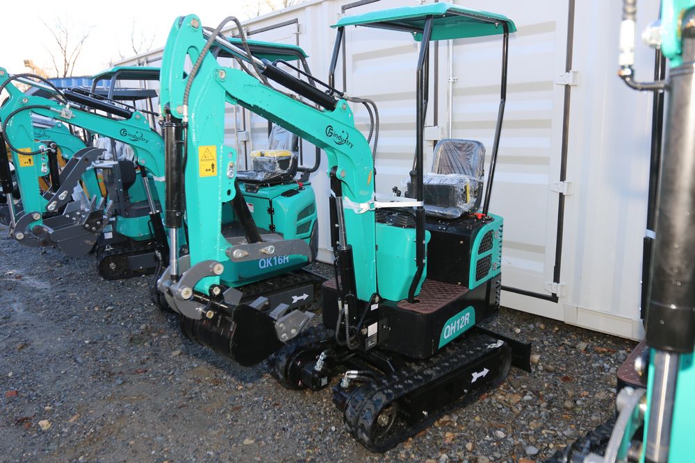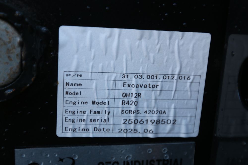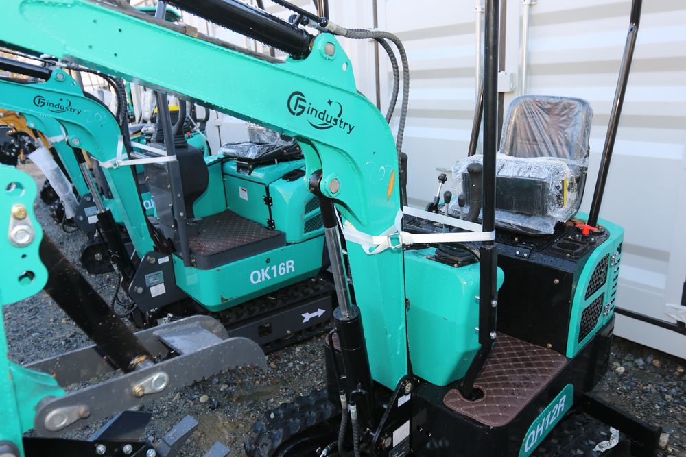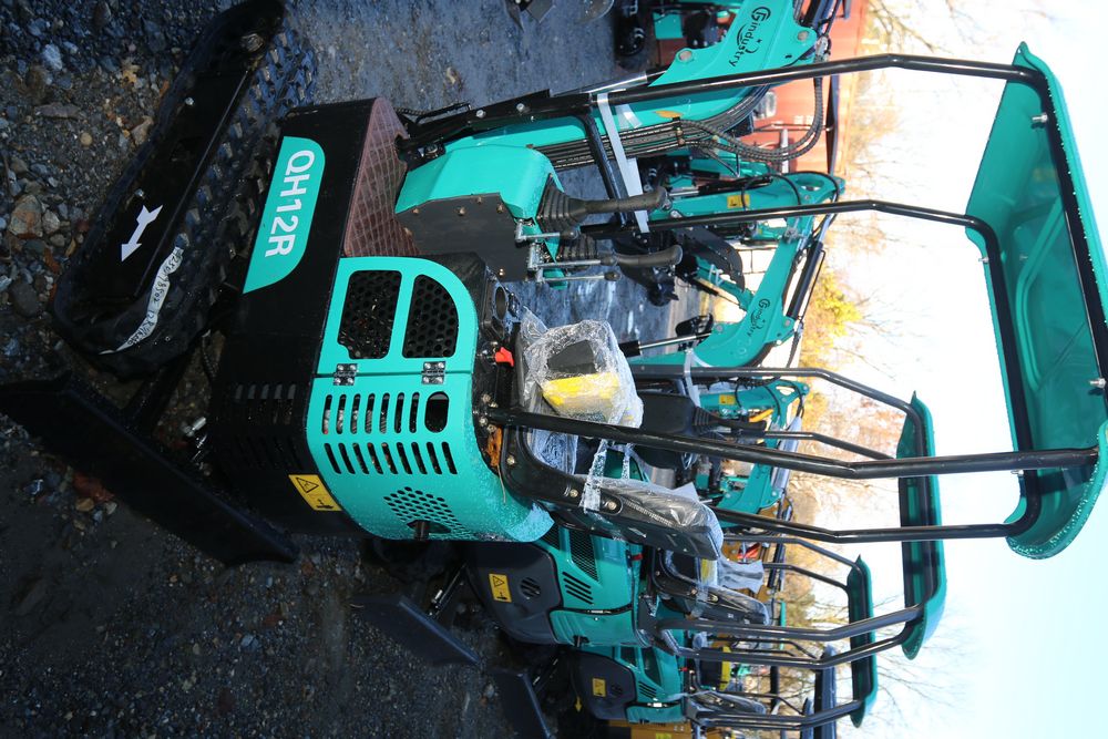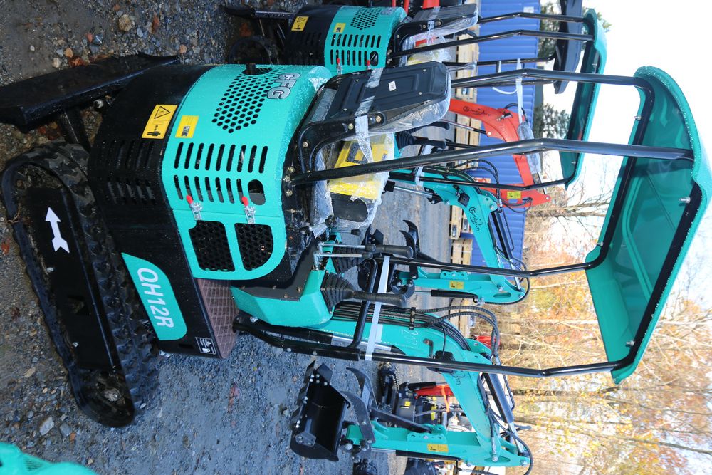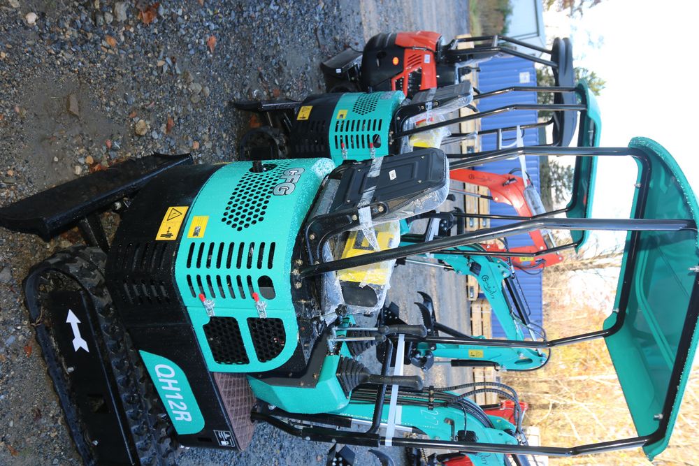 New 2025 CFG industrial gas powered mini Excavator model QH12R with 420cc gasoline engine, bucket, 4' long tracks, 36.5" wide base, 6" wide tracks, canopy, hydraulic boom & bucket controls, dozer blade. Hours reading less than 1 hour.