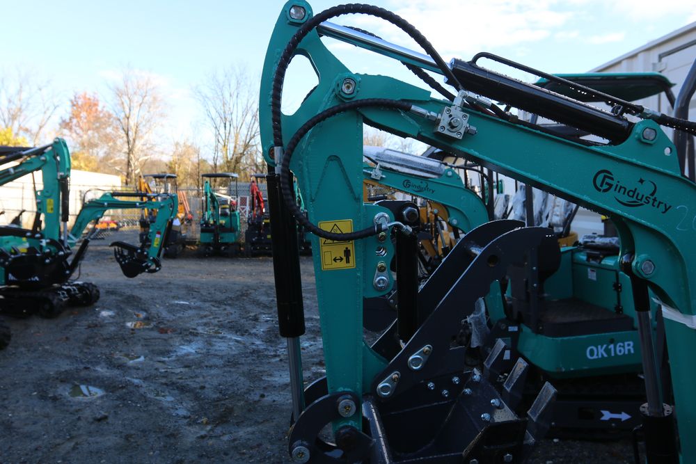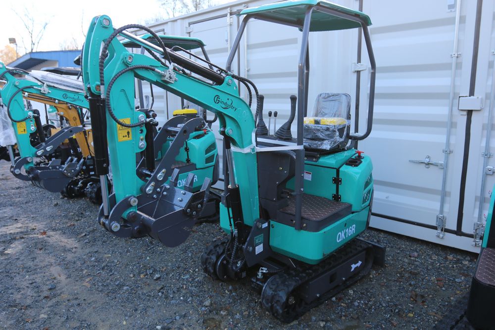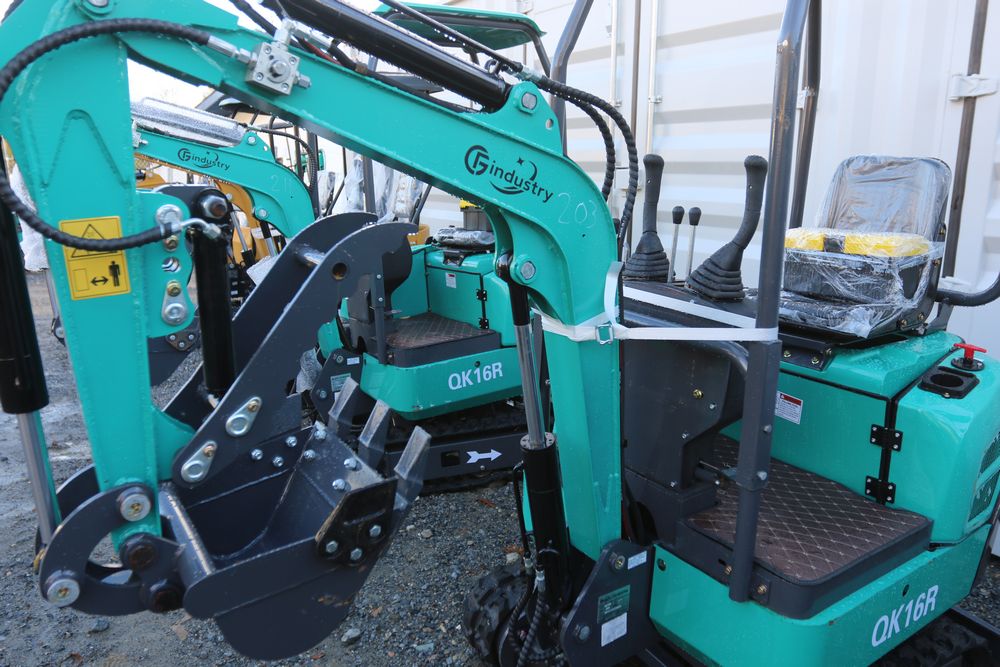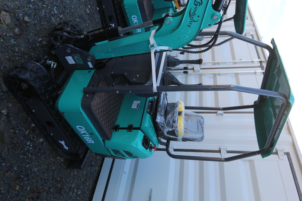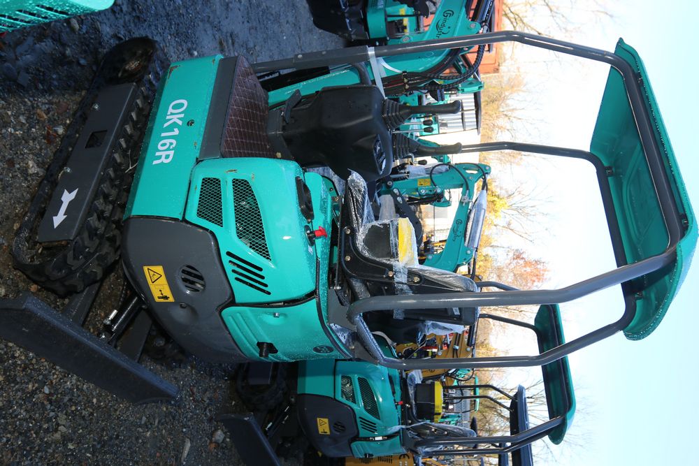 New 2025 CFG industrial gas powered mini Excavator model QK16R with bucket, dozer blade, aux hydraulics, engine model R420, 920KG load, with canopy cover. Hours reading less than 1 hour.