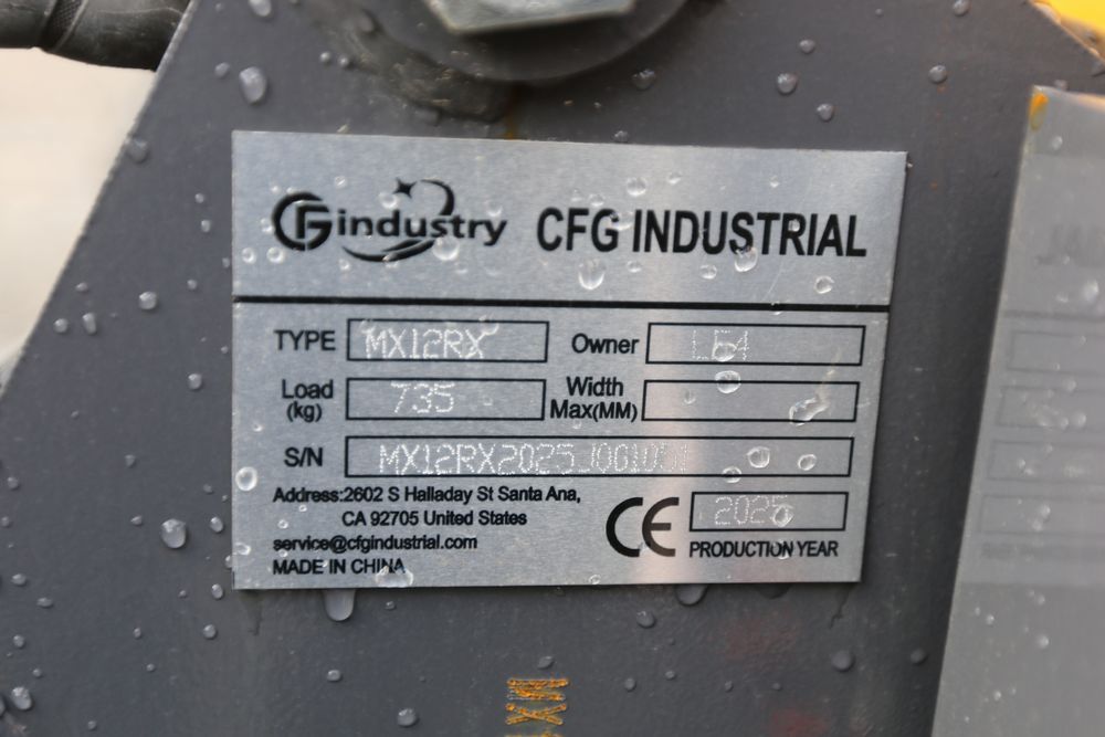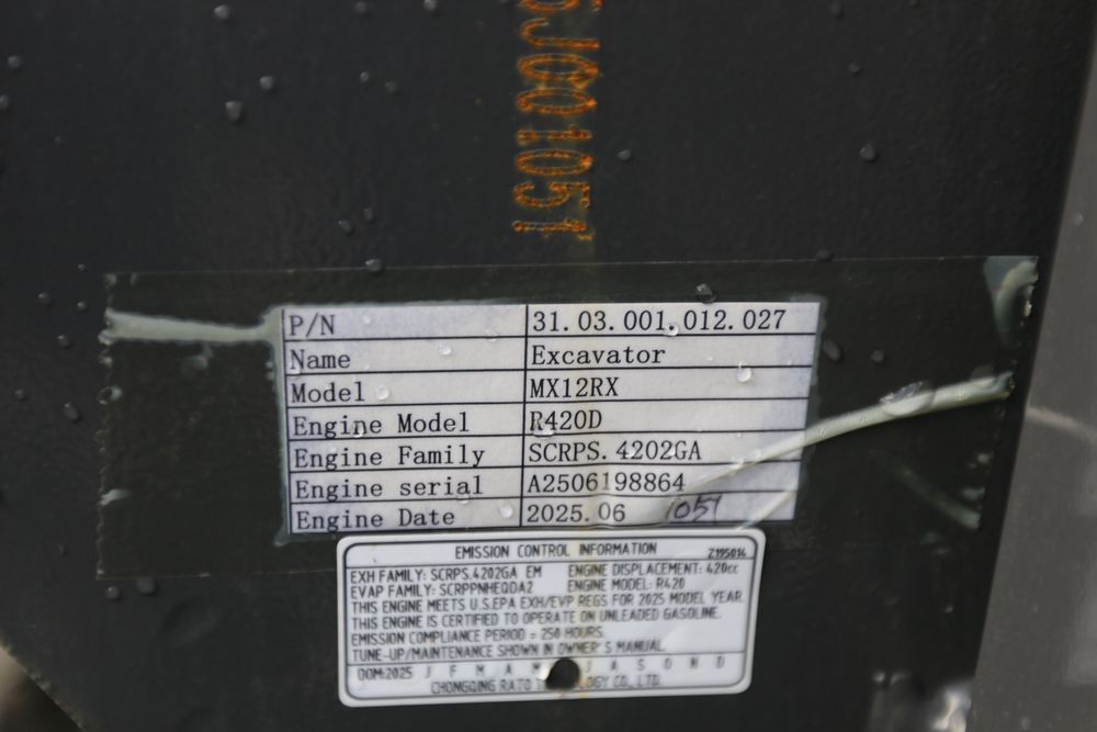 New 2025 CFG Industrial mini excavator model MX12RX, Briggs & Stratton 13.5HP 8.6KW gasoline engine with EPA, bucket, thumb, dozer blade. Hours reading less than one hour.