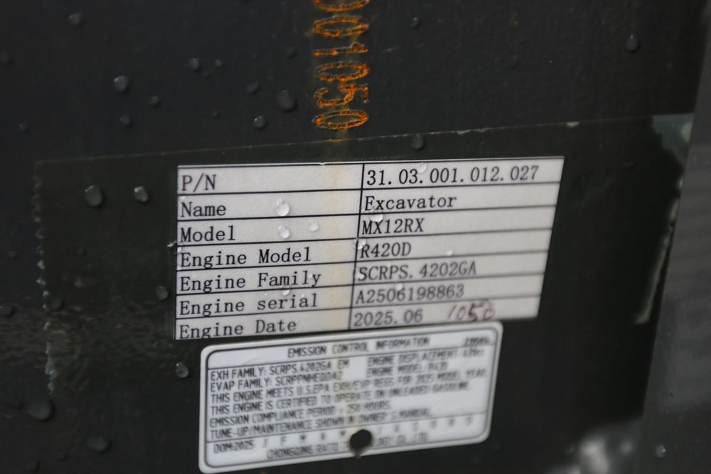 New 2025 CFG Industrial mini excavator model MX12RX, Briggs & Stratton 13.5HP 8.6KW gasoline engine with EPA, bucket, thumb, dozer blade. Hours reading less than one hour.