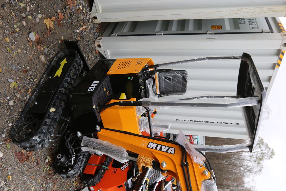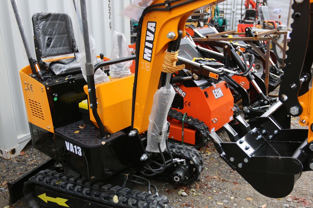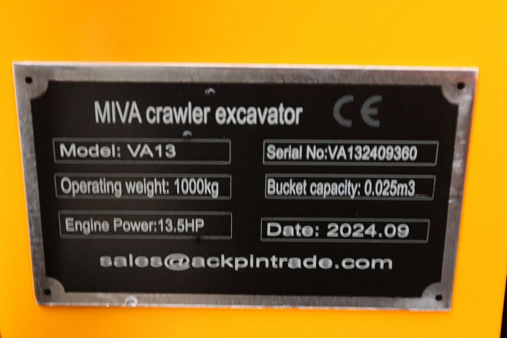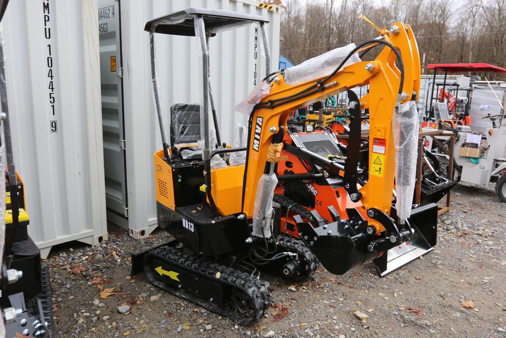 New 2025 MIVA mini excavator model VA13 w/ thumb, tracks, Hydraulic Boom & Bucket Controls, bucket, and 13.5 HP engine. Hours read less than one hour.