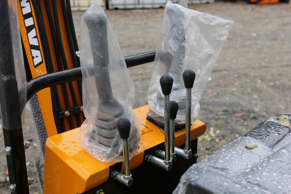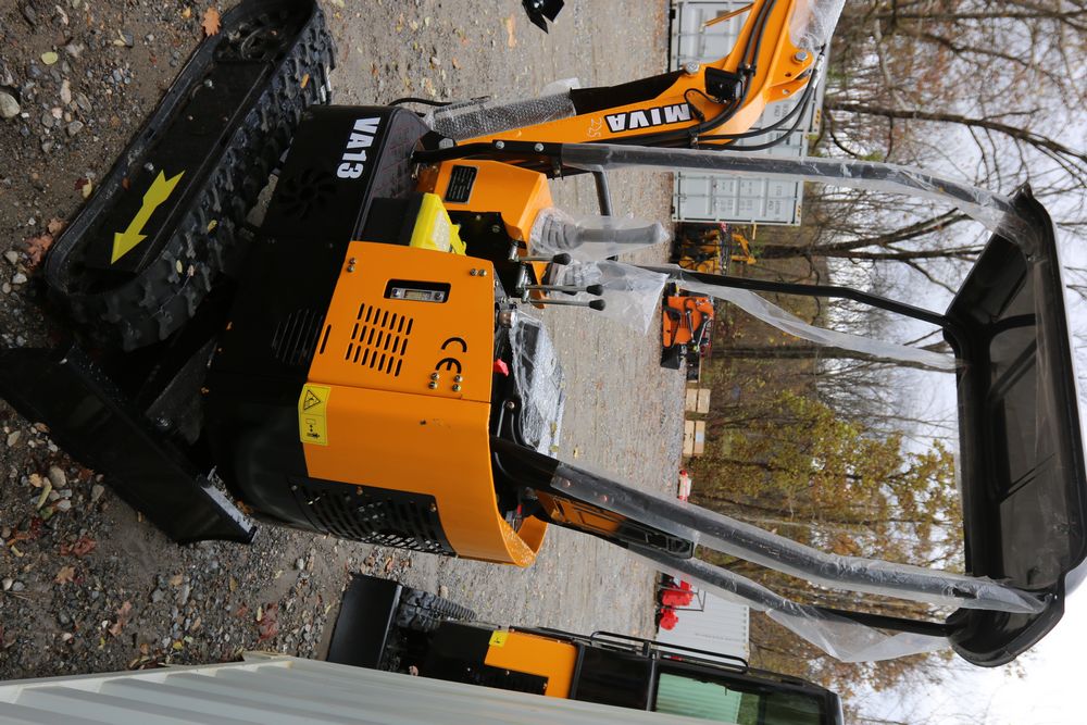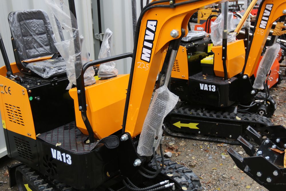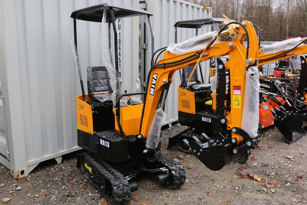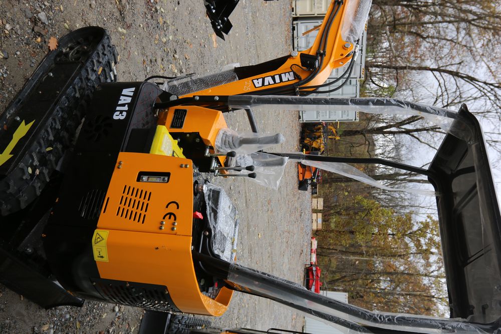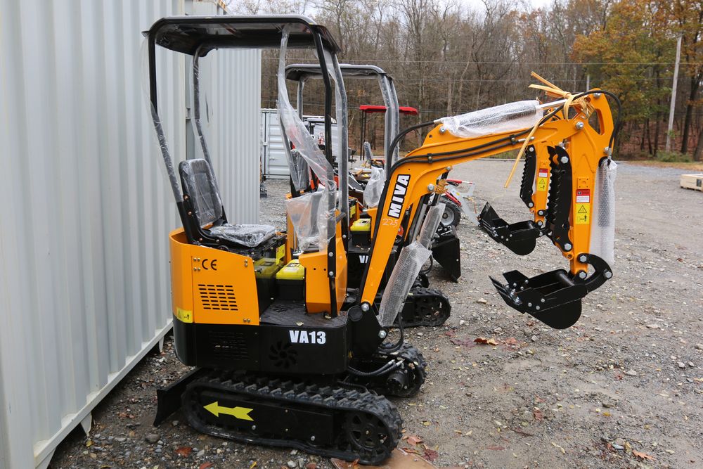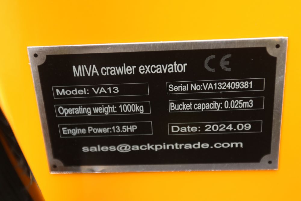 New 2025 MIVA mini excavator model VA13 w/ thumb, tracks, Hydraulic Boom & Bucket Controls, bucket, and 13.5 HP engine. Hours read less than one hour.