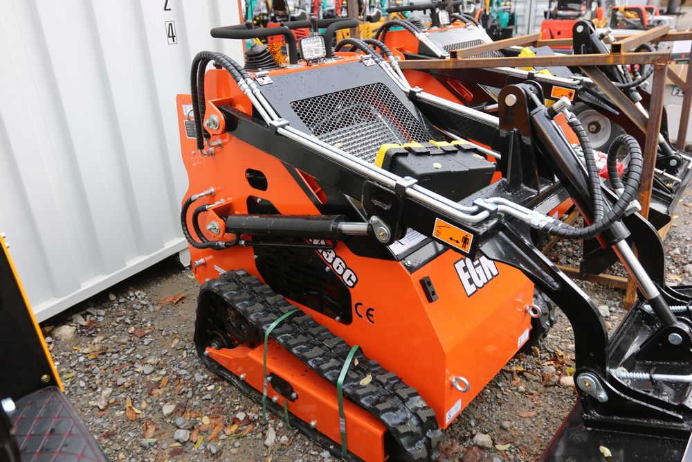New EGN mini skid steer track loader model: EG36C, 13.5hp engine, bucket, hand controls, and auxiliary hydraulics. Hours reading less then one hour.