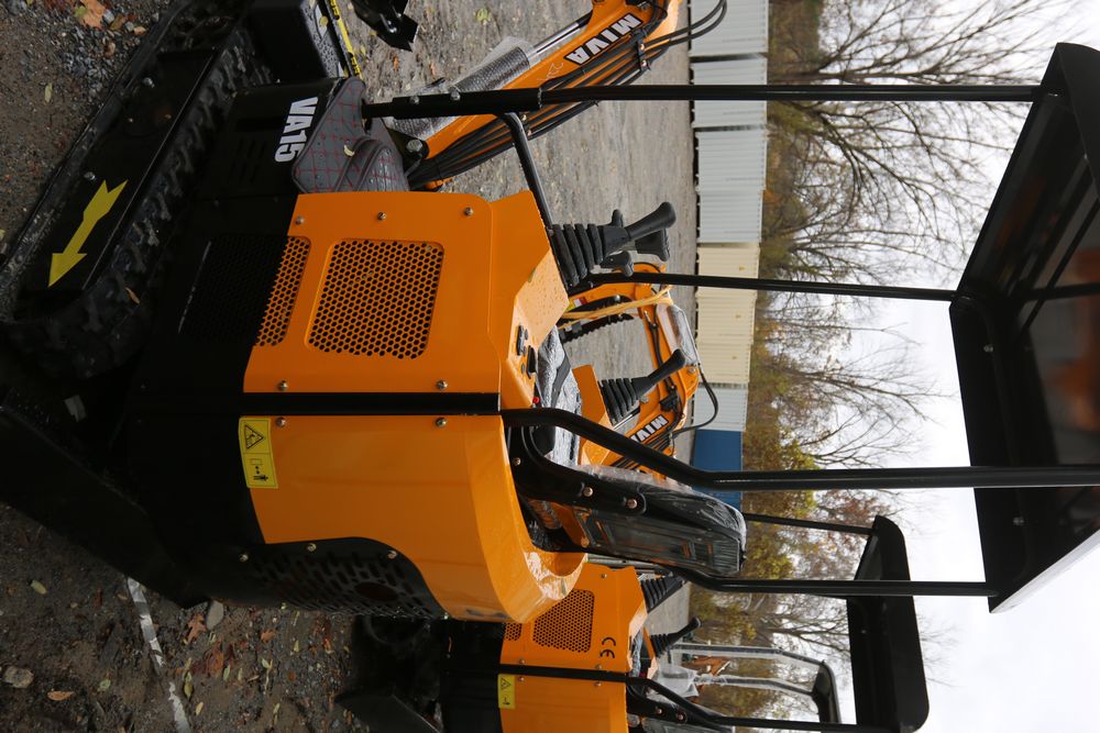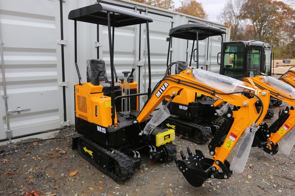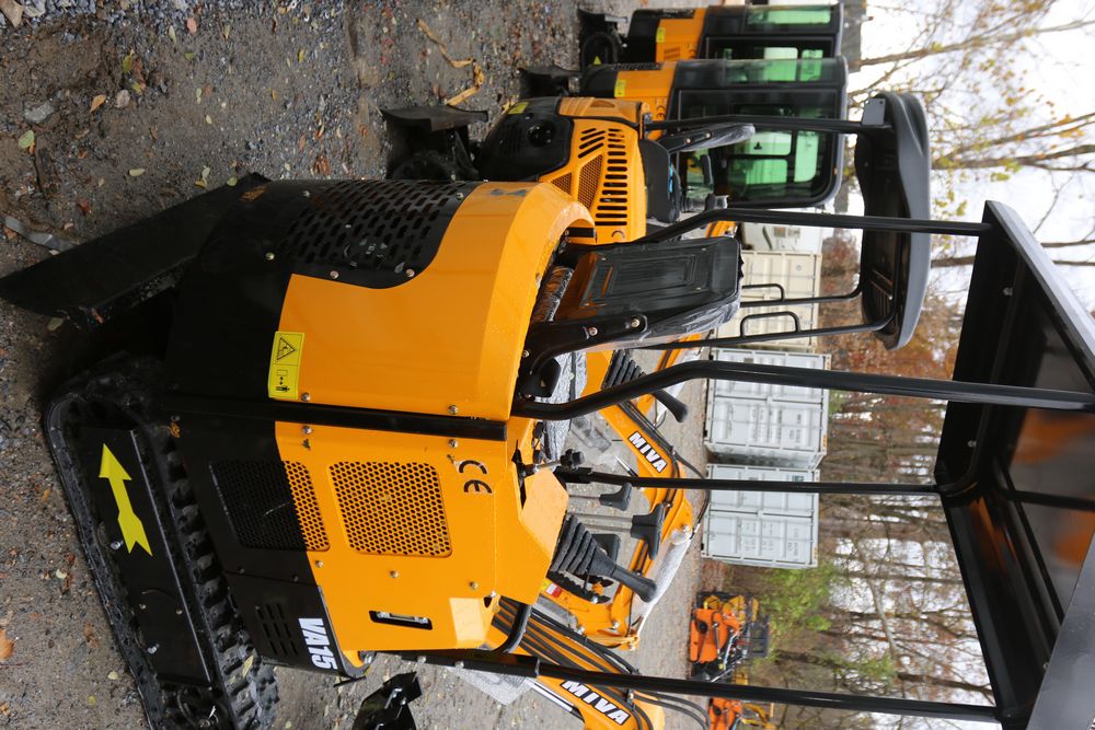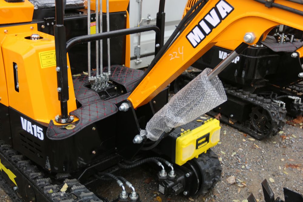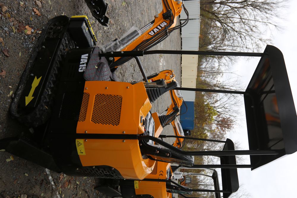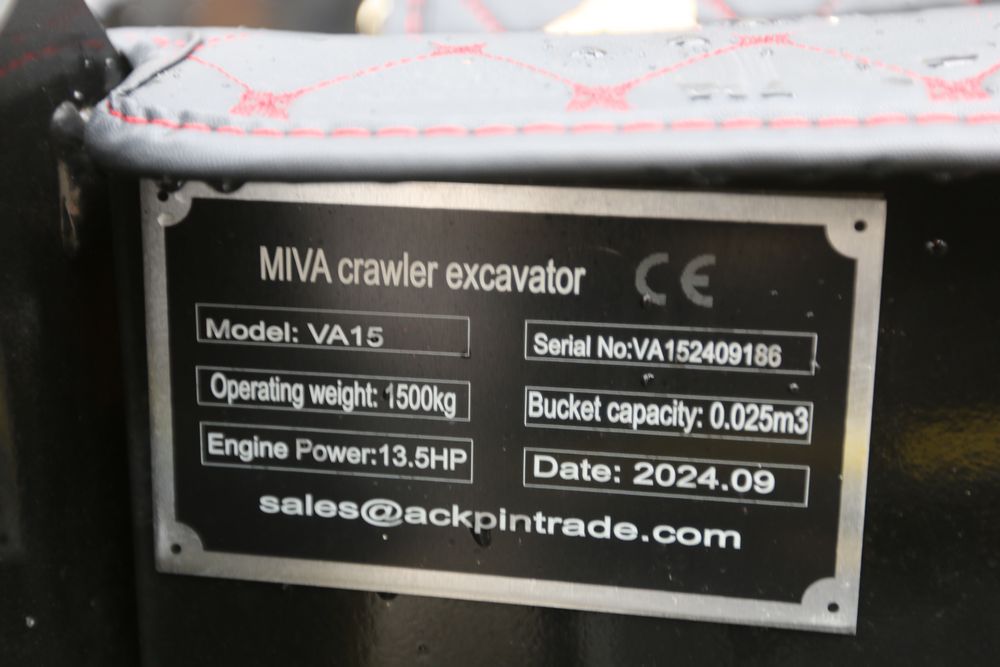 New MIVA mini excavator model: VA15, 13.5hp Briggs and Stratton gas engine, w/ thumb, Hydraulic Boom & Bucket Controls, bucket, with canopy and support bars. Hours reading less than one hour.
