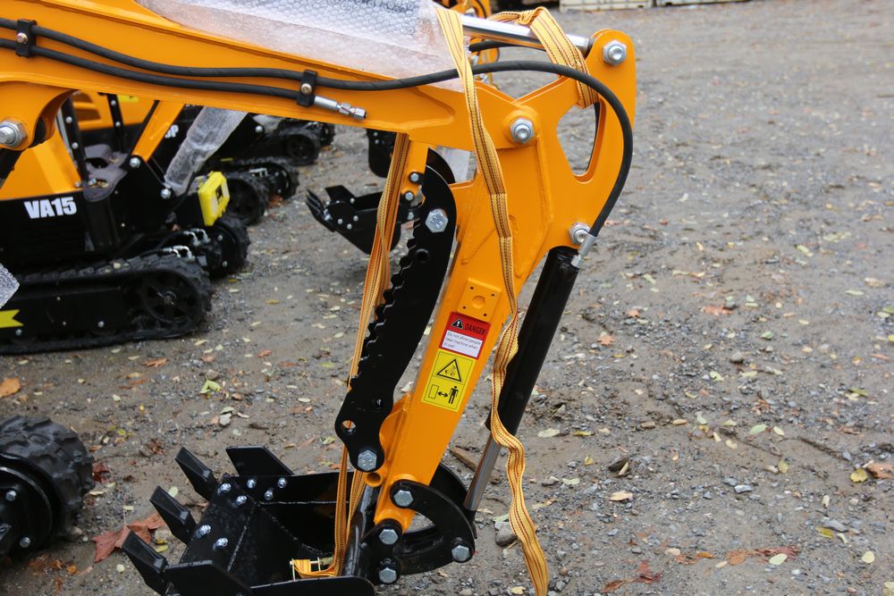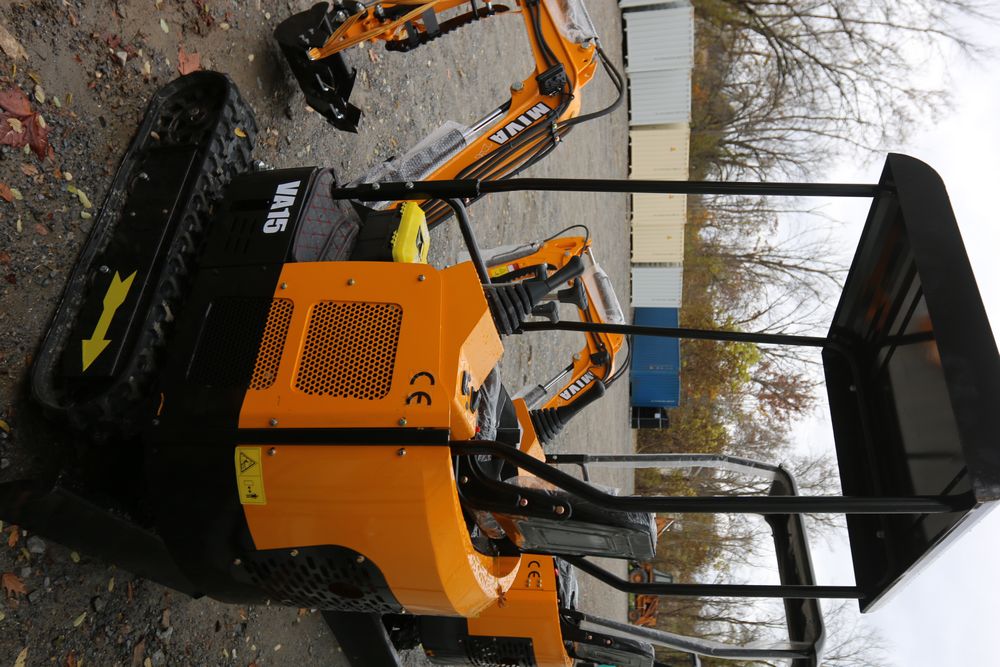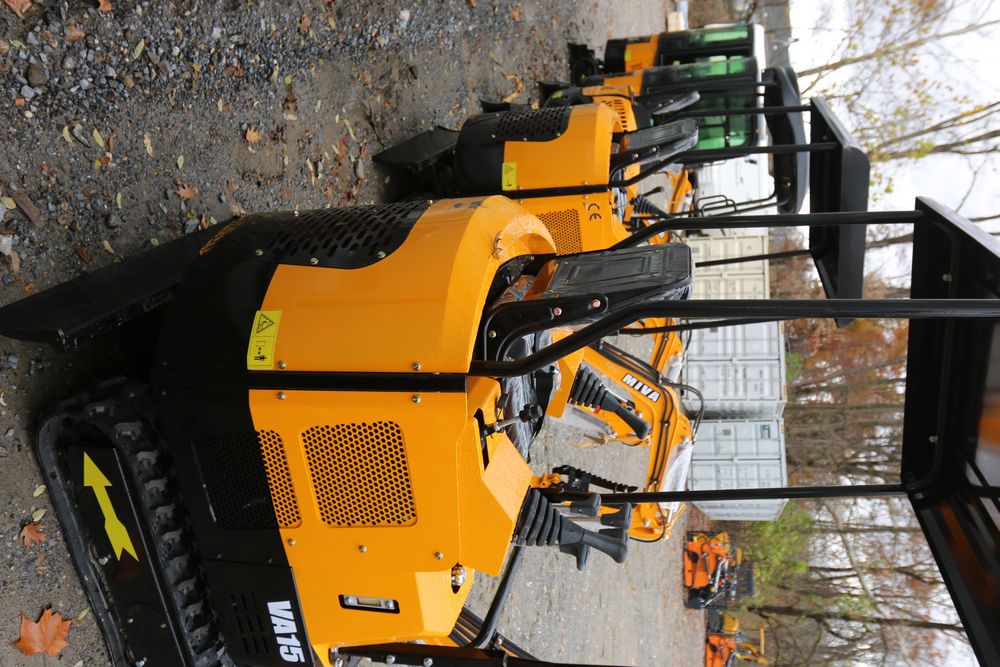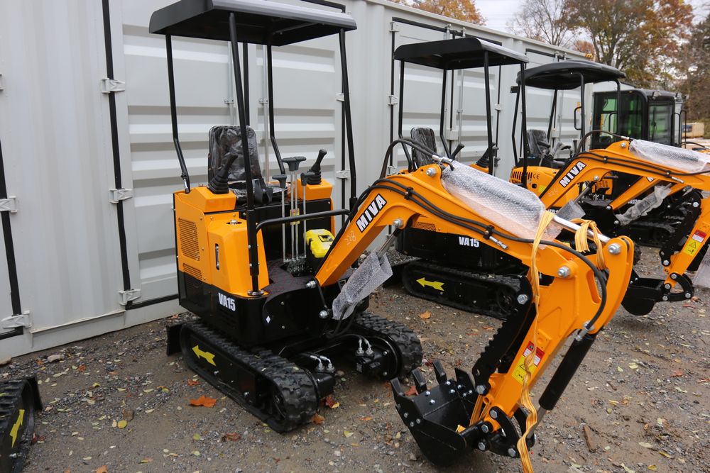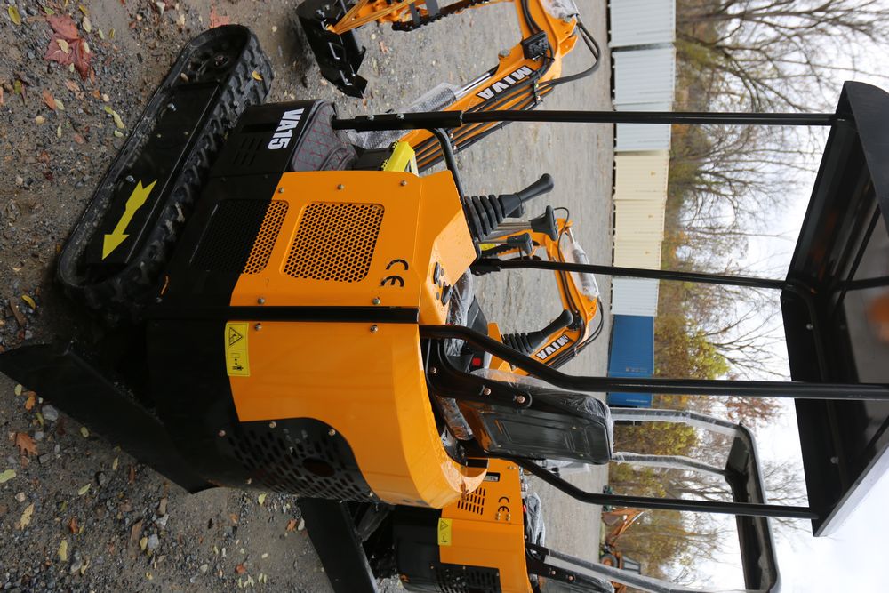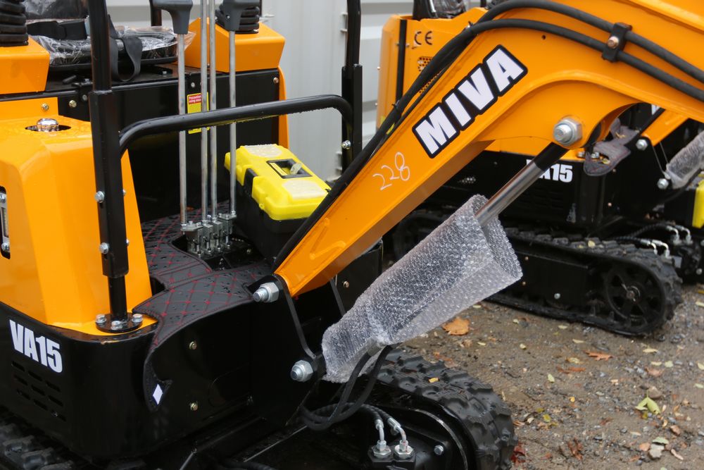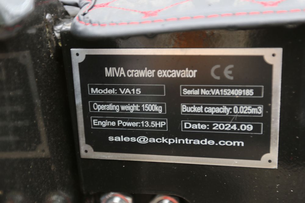 New MIVA mini excavator model: VA15, 13.5hp Briggs and Stratton gas engine, w/ thumb, Hydraulic Boom & Bucket Controls, bucket, with canopy and support bars. Hours reading less than one hour.