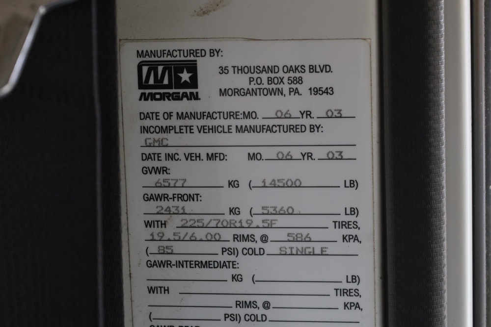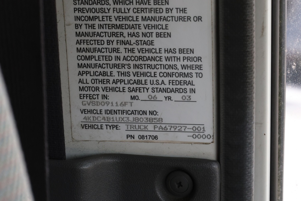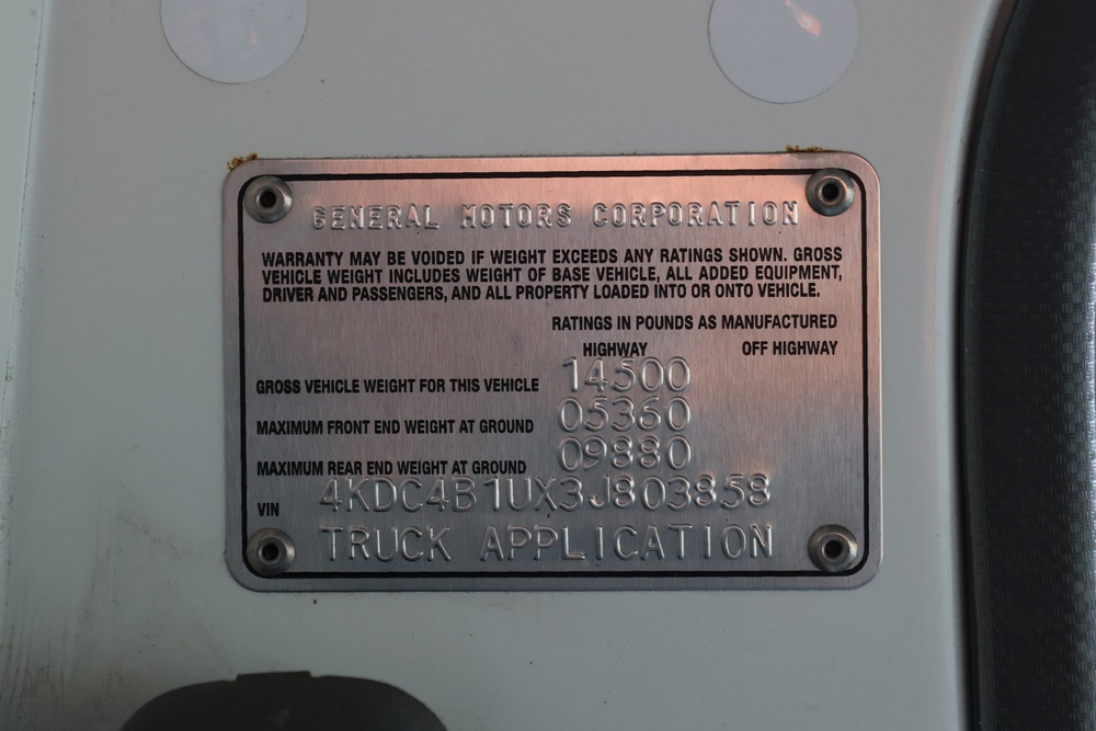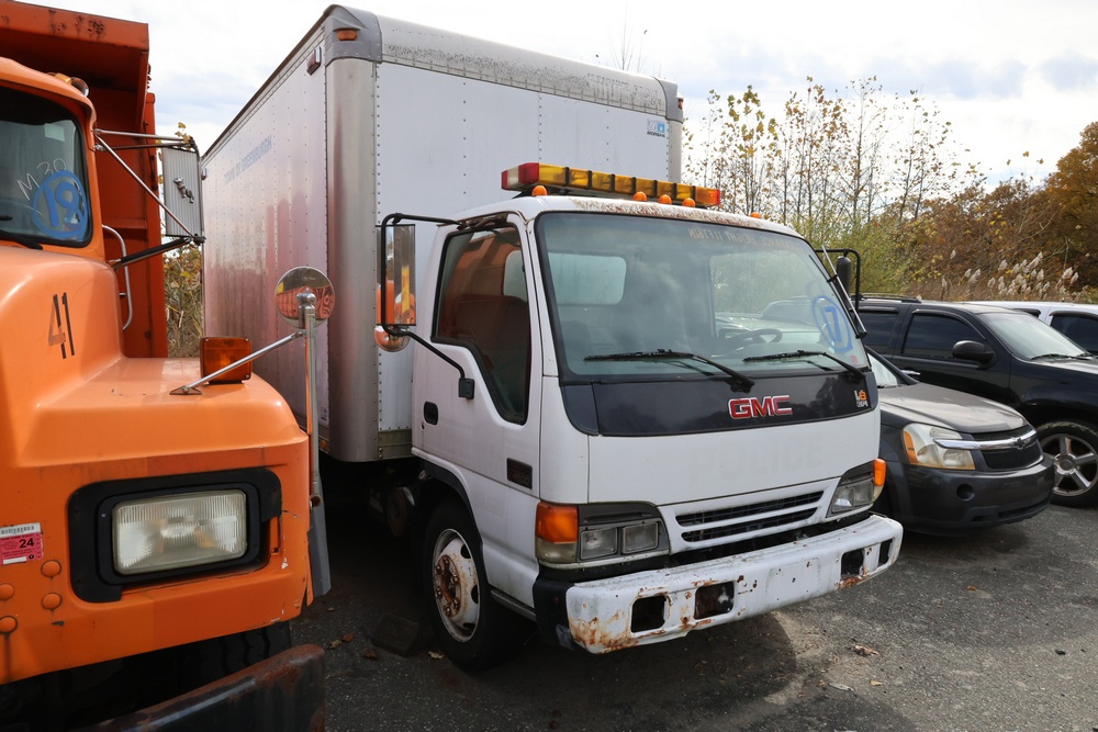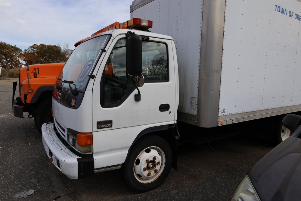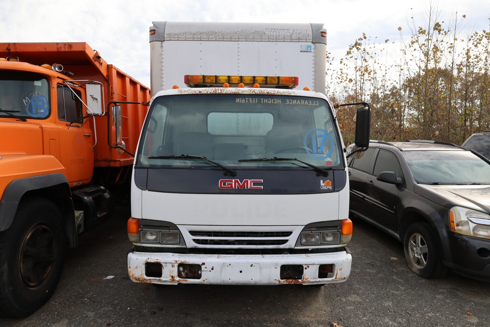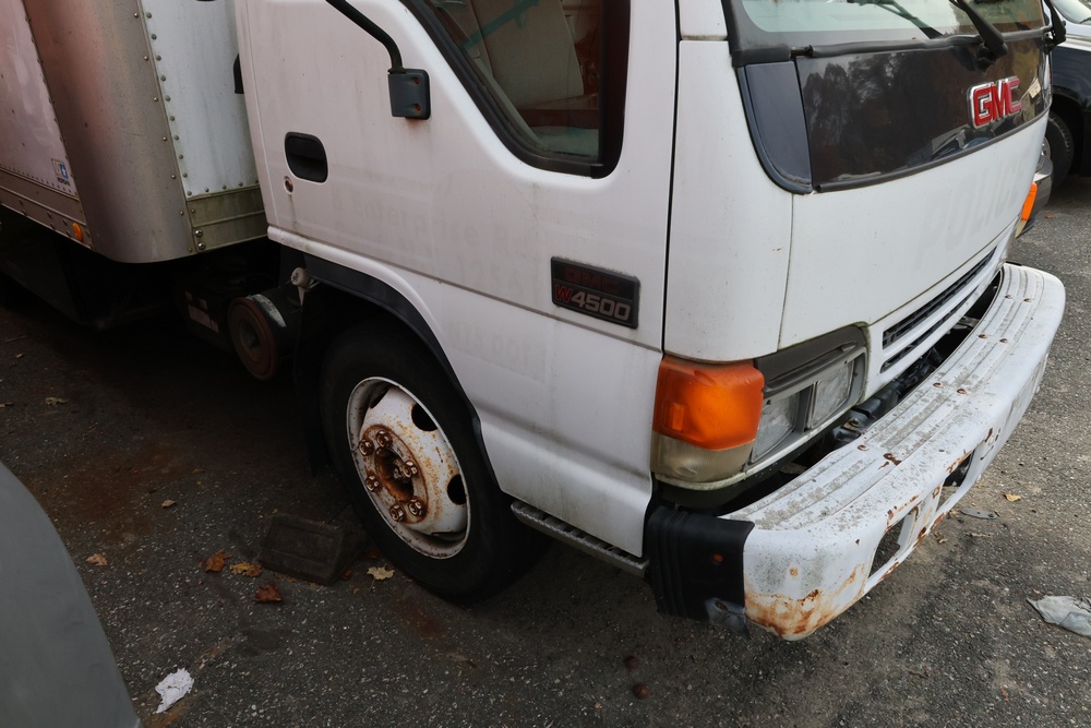 2003 GMC W4500 Box Truck. VIN 4KDC4B1UX3J803858. Last reported odometer reading: 130684. Runs & drives. Seller reports exhaust leak, may need brake work. Title and key available.