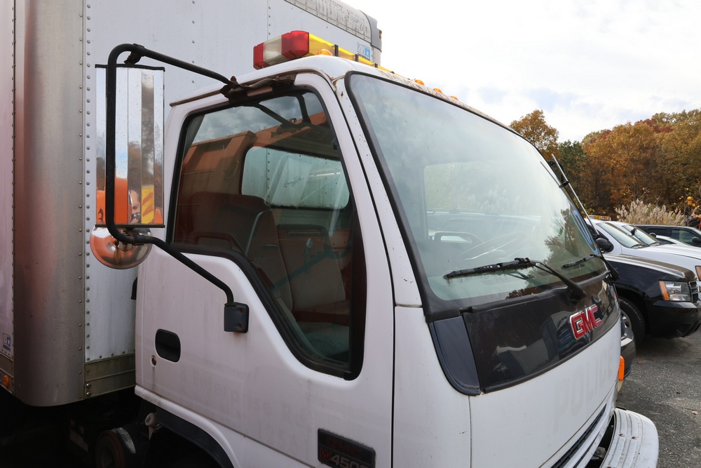 Items include 2014 Ford Fusion, 2015 Ford Fusion, 2012 Chevy Tahoe, 2010 Chevy Tahoe, 1990 Military Generator, 2003 GMC W4500 Box Truck, 2004 Mack dump truck, 2011 Ford F-350, 2014 Ford F-350, 2015 Ford Escape, 2001 International SCNV20 box van, Low Band 2-Way Radios, and more. Items are located in Irvington NY.