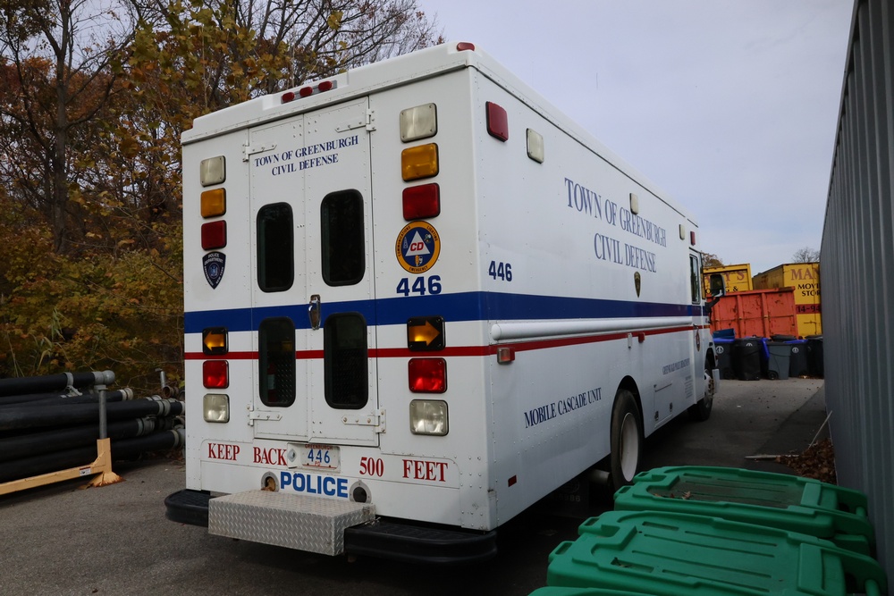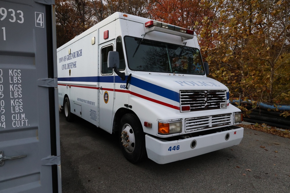 Items include 2014 Ford Fusion, 2015 Ford Fusion, 2012 Chevy Tahoe, 2010 Chevy Tahoe, 1990 Military Generator, 2003 GMC W4500 Box Truck, 2004 Mack dump truck, 2011 Ford F-350, 2014 Ford F-350, 2015 Ford Escape, 2001 International SCNV20 box van, Low Band 2-Way Radios, and more. Items are located in Irvington NY.