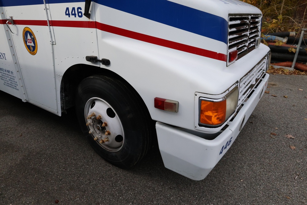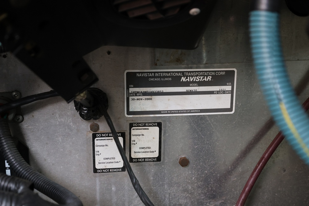 2001 International SCNV20 box van. VIN: 1HTMGABM01A933852. Odometer reading: 4214. Runs & drives. Title & key available. Needs fresh batteries. Town markings will be removed prior to pickup. Excludes any current town radio equipment.