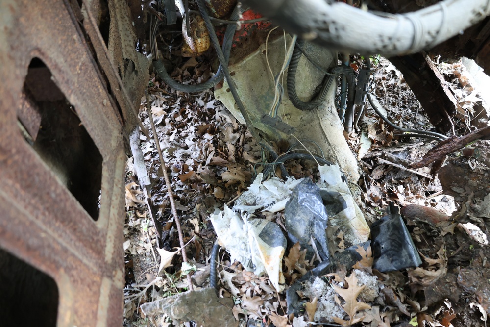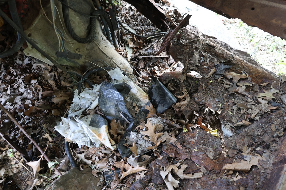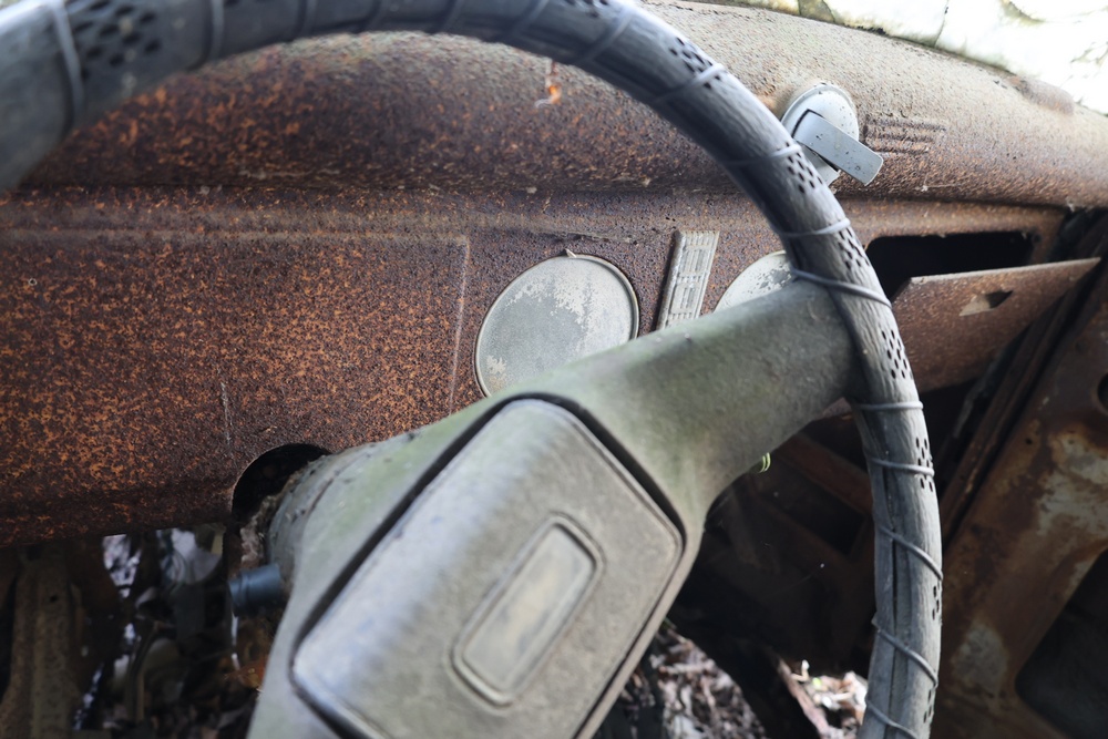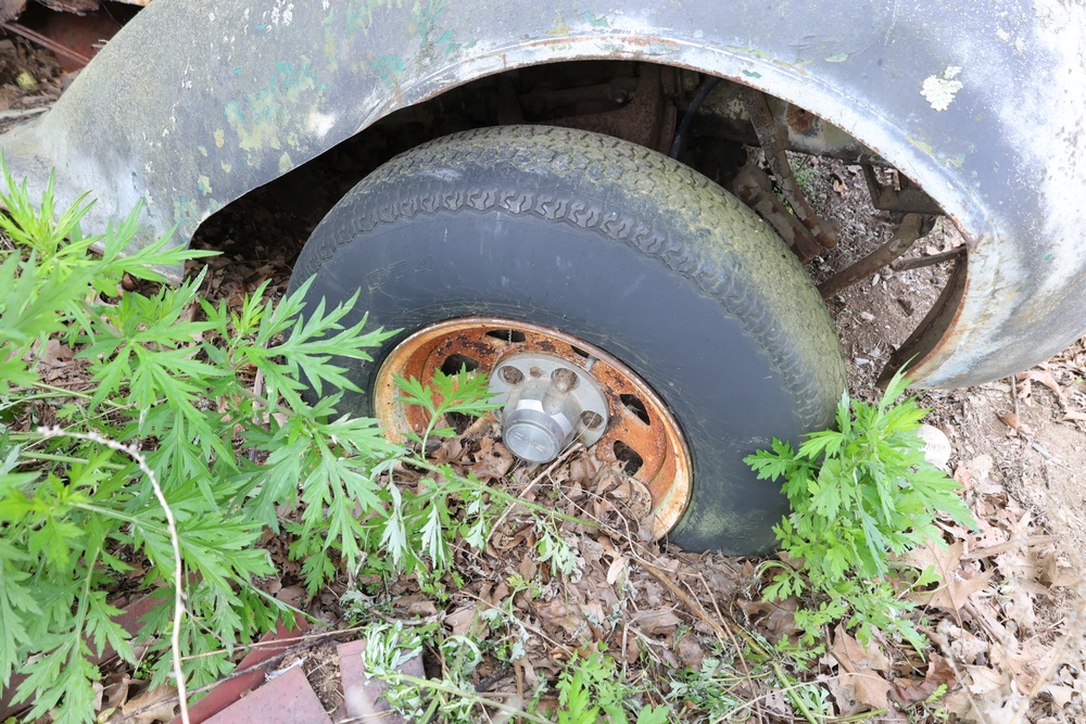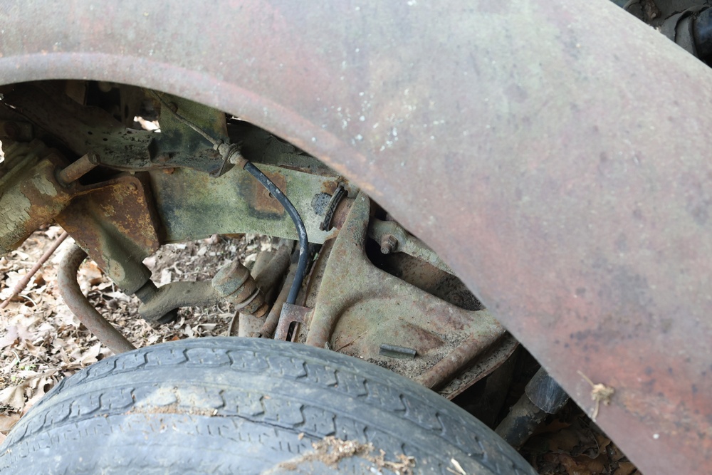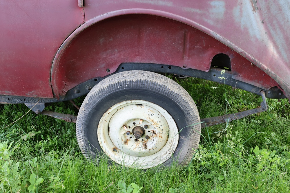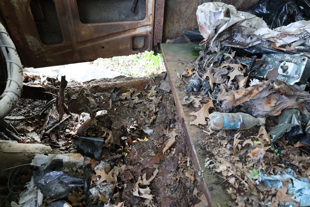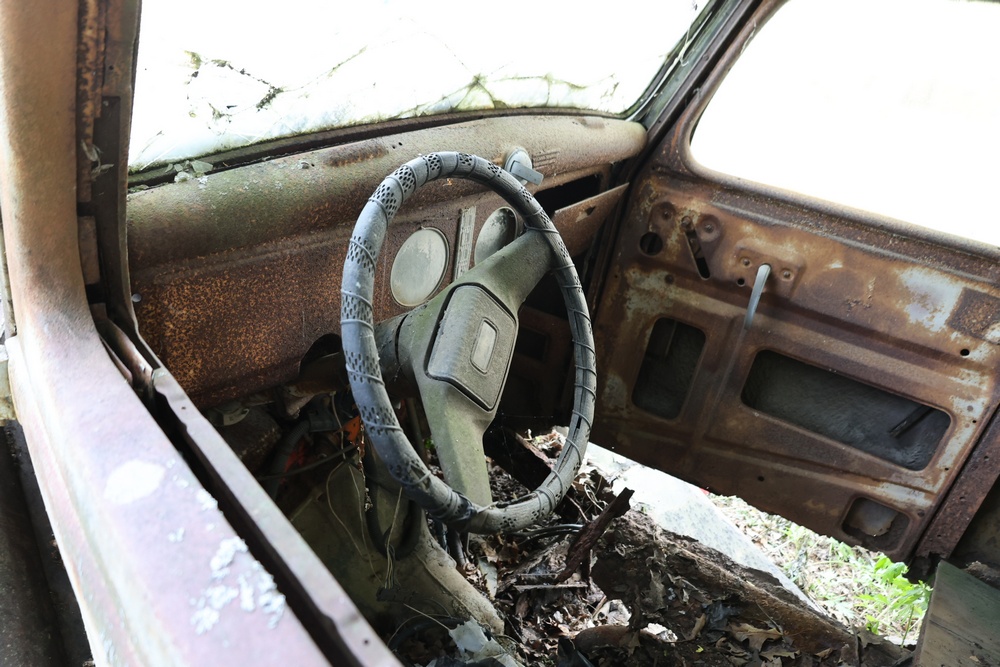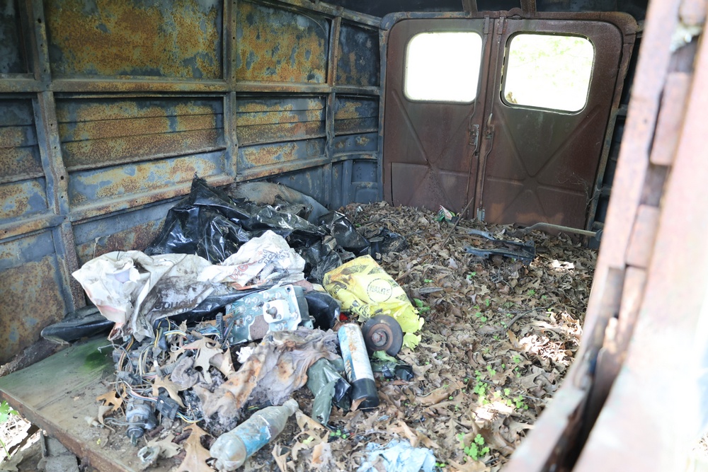 Two Dodge - Chrysler vehicles from the 1930s, including a 1938 panel delivery and a sedan body. Both are in unrestored, missing components, and no interiors. Ideal for restoration or salvageable for parts. Includes an identification plate showing vehicle details. Bill of sale only.