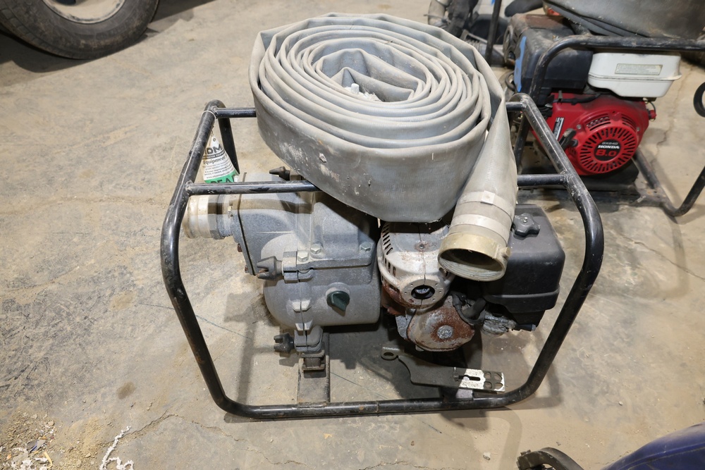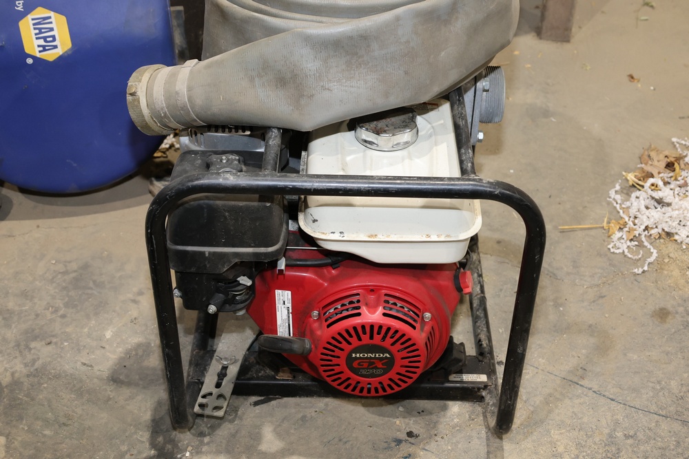 Items include 2017 Polaris Ranger XP 1000 EPS with a dump bed; Riverside pump 328GPM 3" trash pump; Honda WT30X trash pump; Stihl 65CC backpack blowers; Stihl handheld leaf blower & Napa Industrial air compressor with pump. Items are located in Rhinebeck, NY.