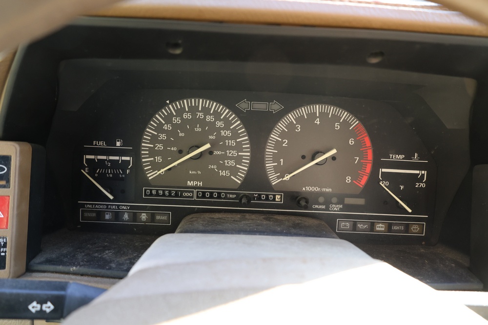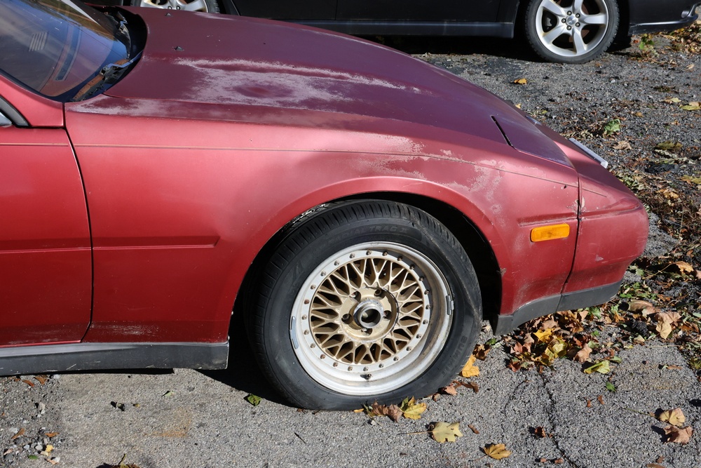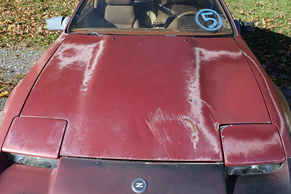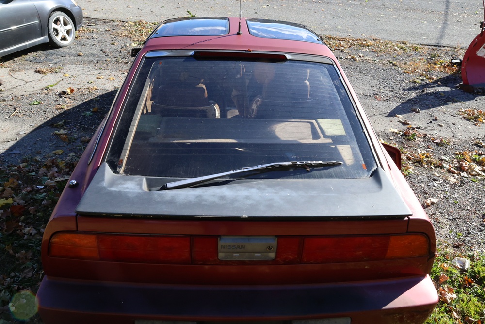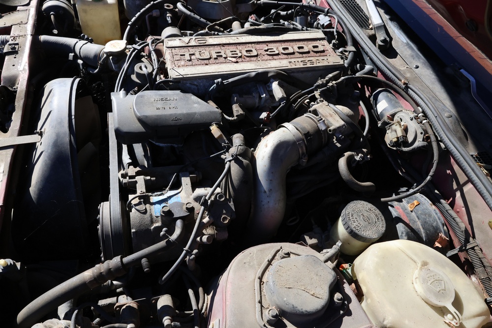 1987 Nissan 300ZX 2-door coupe with 5-speed manual transmission. VIN: JN1CZ14S3HX151067. Odometer reading: 69,521 miles. Exterior: Burgundy paint with pop-up headlights, alloy wheels, side mirrors, and Z emblem on the hood. Interior: Brown leather seats, digital climate control, factory AM/FM cassette stereo with equalizer, mobile phone, and 5-speed floor shifter. Tire configuration: Standard coupe with alloy wheels. Additional equipment includes T-top roof, power accessories, and analog instrument cluster. Title and key available. Seller reports: Ran, drove, and dealer maintained when last used in the early 2000s.