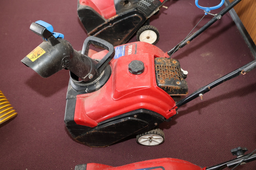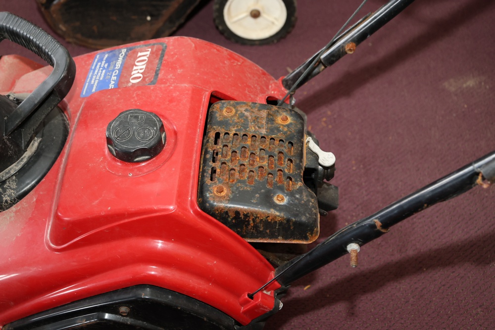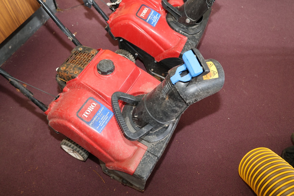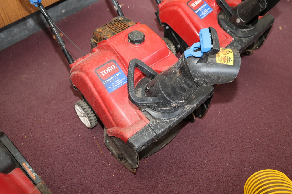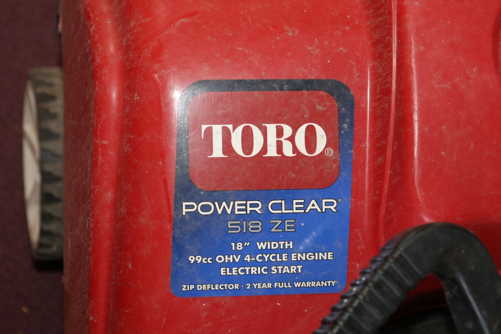Toro Power Clear 518 ZE snow blower equipped with a 99cc OHV 4-cycle engine, 18-inch clearing width, and electric start. Seller reports: for parts or repair.