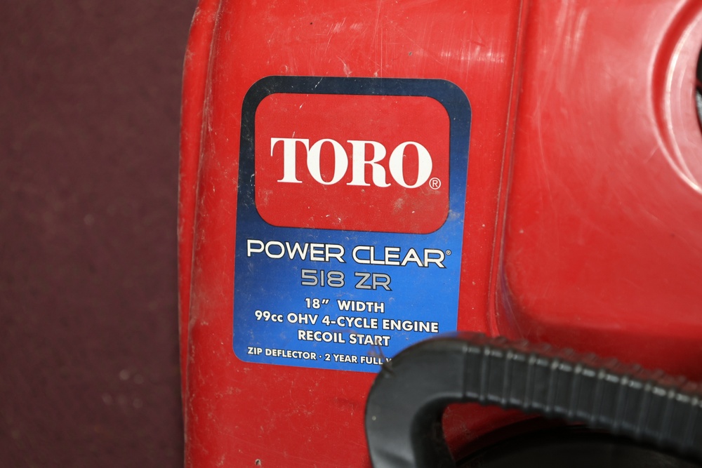 Toro Power Clear 518 ZR snow blower equipped with a 99cc OHV 4-cycle engine, 18-inch clearing width, and recoil start. Seller reports: for parts or repair.