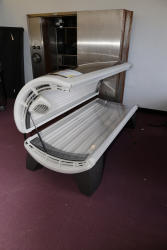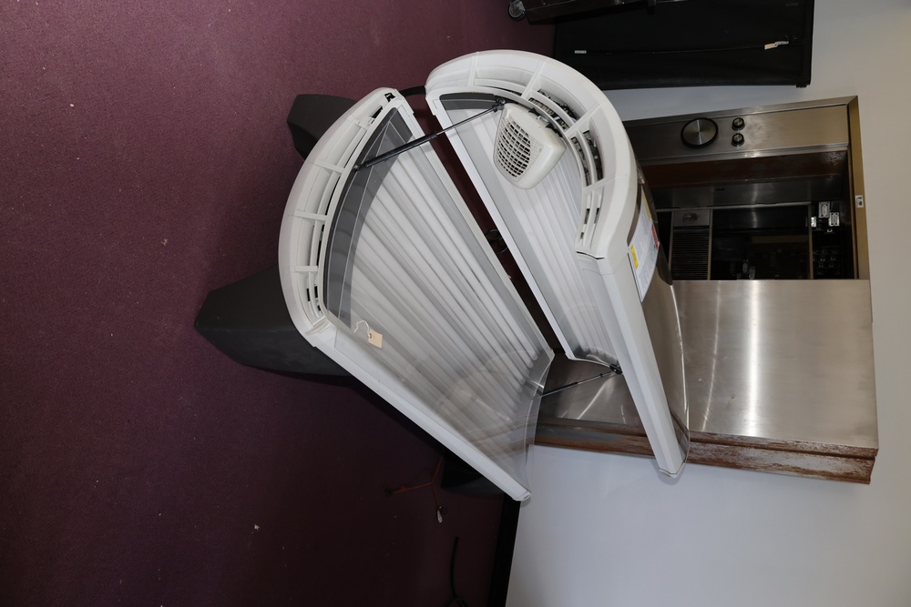 Sunfire tanning bed model 32/1. Seller reports: low hour bed, new acrylic included, needs to be installed, two bulbs need replacement, otherwise functional.