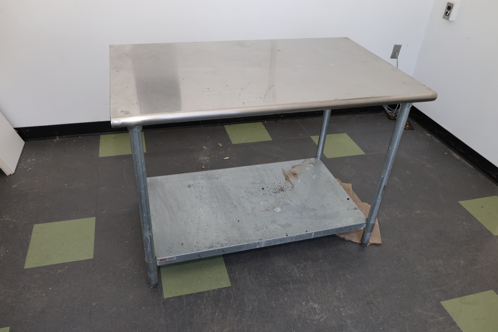 Stainless steel restaurant food prep table approx. 29.5" x 48" x 35" tall.