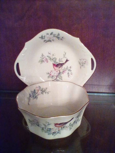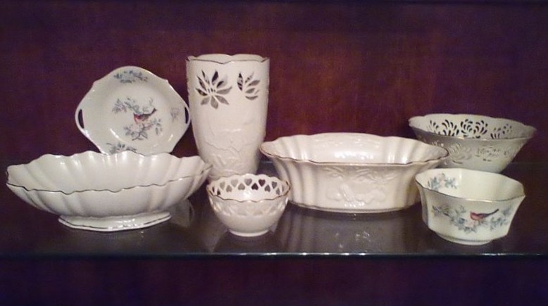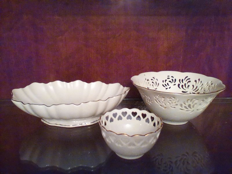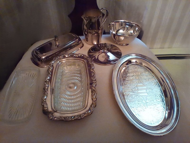 Quality Entertaining, featuring Lenox. Silver plate Oneida cream/sugar/tray (4-pc) set & 3-pc cov butter dish set with extra glass insert; sever pcs Lenox incl: vase, 8"H; (2) oval bowls, each appr 11"L; (1) 8" round bowl; three others (see photos); Leonard Silver carv knife; 3-pc SS carving set; 2-pc cake cutting set; assort napkin rings.