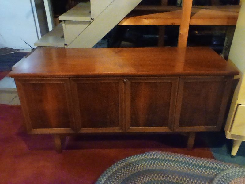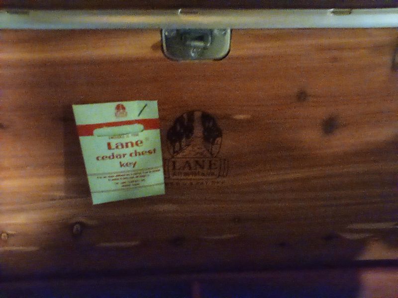Lane Hope chest, Dresser, Rugs. Lane cedar hope chest; 4-drw (dvtl) dresser (missing one drw pull); two oval braided rugs; table lamp; décor; plush bathrobe. Items seen in background not incl.