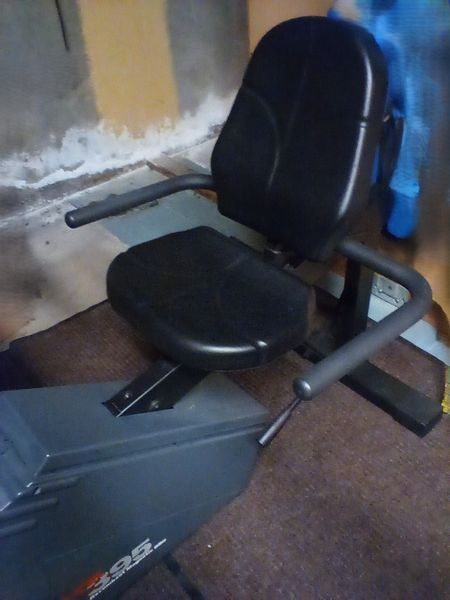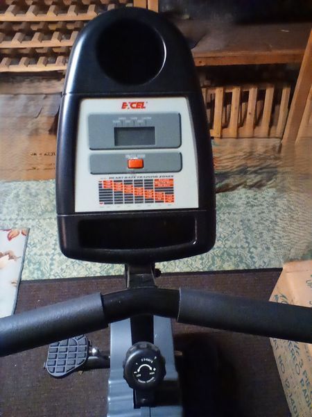 Excel Magnetic Exercise Bike. Excel 395 recumbent magnetic exercise bike (low impact) with heart rate display. See photos for details. Items seen in background not incl. Loc in basement near hatchway door.