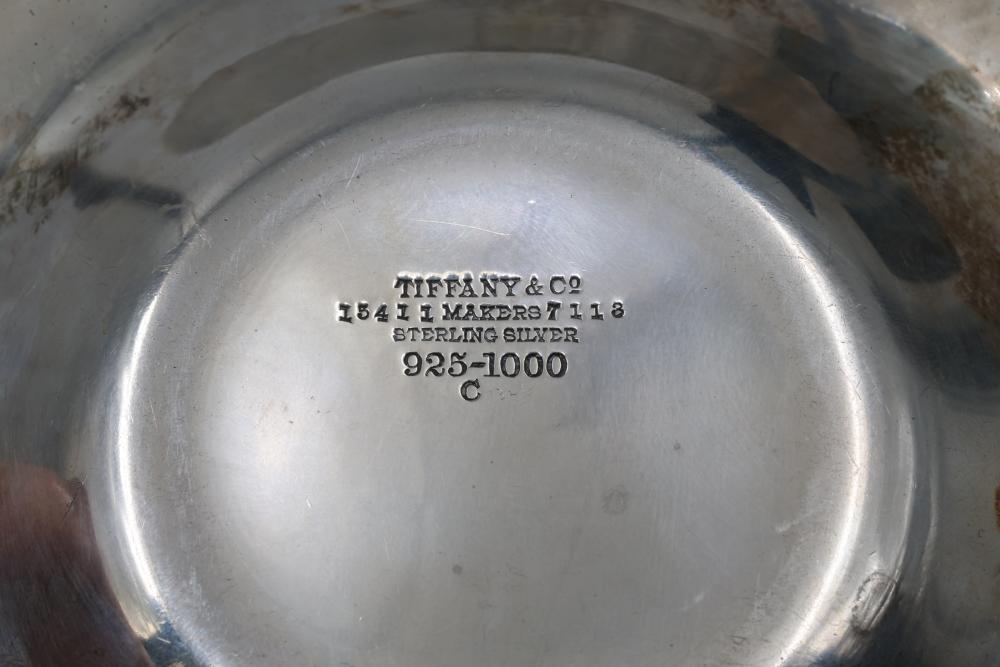 Items include 18K Rose Gold Tiffany & Co. Paloma Picasso Graffiti Narrow Love Kisses Ring; Tiffany & Co. Platinum Bee Pendant Necklace with Diamonds and Yellow Sapphire; Tiffany & Co. Sterling Silver Knife Rests with Wooden Inserts; Tiffany & Co. Platinum Engagement Ring with Diamond and Certification; Tiffany & Co. Crystal Symphony 1999 World Cruise Sterling Pendant; Tiffany & Co. Shirt Studs 14k Gold with Sapphires; Six Sterling Silver Teaspoons with Monogram; Decorative Metal Bowl With Embossed Floral Design; Reed & Barton Mirrosteel Sterling Knives and Butter Spreaders & much more. Items are located in Pleasant Valley, NY.