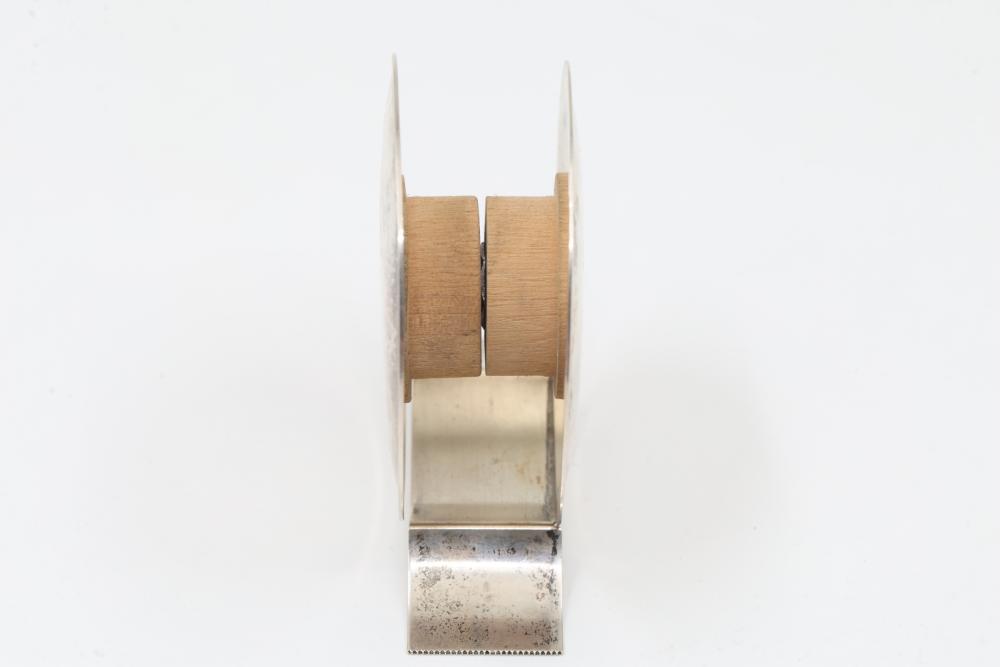 Tiffany & Co. Sterling Silver Tape Dispenser with Wooden Inserts. Stamped with maker's mark and sterling silver hallmark. Total weight being 71 grams.