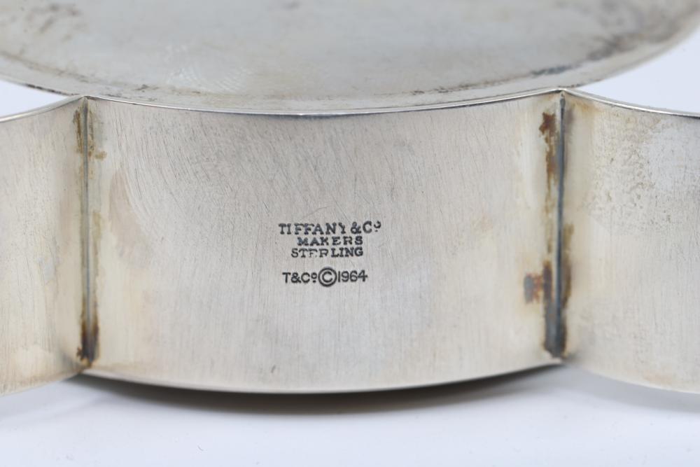 Items include 18K Rose Gold Tiffany & Co. Paloma Picasso Graffiti Narrow Love Kisses Ring; Tiffany & Co. Platinum Bee Pendant Necklace with Diamonds and Yellow Sapphire; Tiffany & Co. Sterling Silver Knife Rests with Wooden Inserts; Tiffany & Co. Platinum Engagement Ring with Diamond and Certification; Tiffany & Co. Crystal Symphony 1999 World Cruise Sterling Pendant; Tiffany & Co. Shirt Studs 14k Gold with Sapphires; Six Sterling Silver Teaspoons with Monogram; Decorative Metal Bowl With Embossed Floral Design; Reed & Barton Mirrosteel Sterling Knives and Butter Spreaders & much more. Items are located in Pleasant Valley, NY.