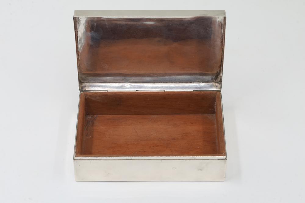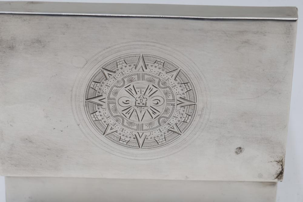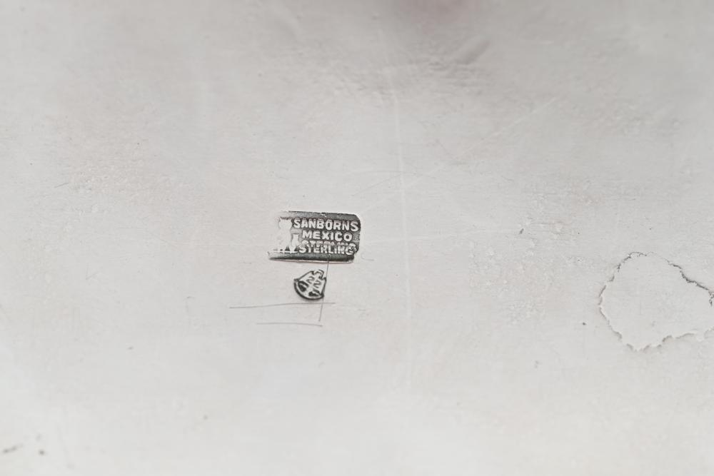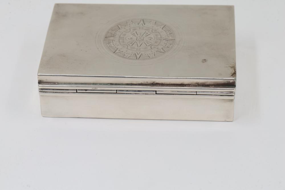 Sanborns Mexico Sterling Silver Box with Engraved Compass Design. Features a detailed compass design on the lid and a wooden interior lining. The box is marked on the underside with 'Sanborns Mexico Sterling.' Total weight being 292 grams.